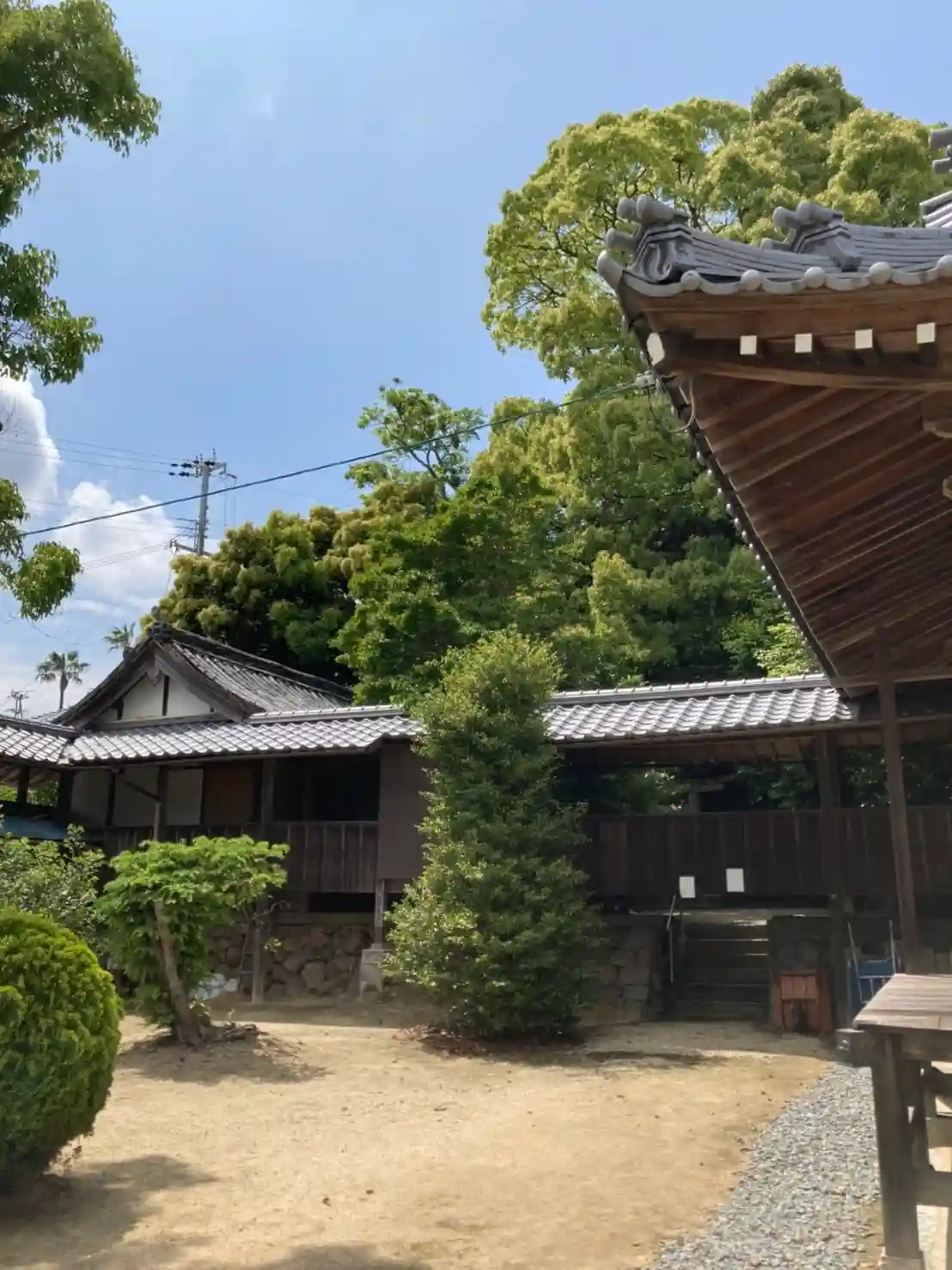 こちら淡路市佐野の八幡さまも緑に囲まれた美しい神社です。特に拝殿は非常に趣があり、淡路島美そのものです。