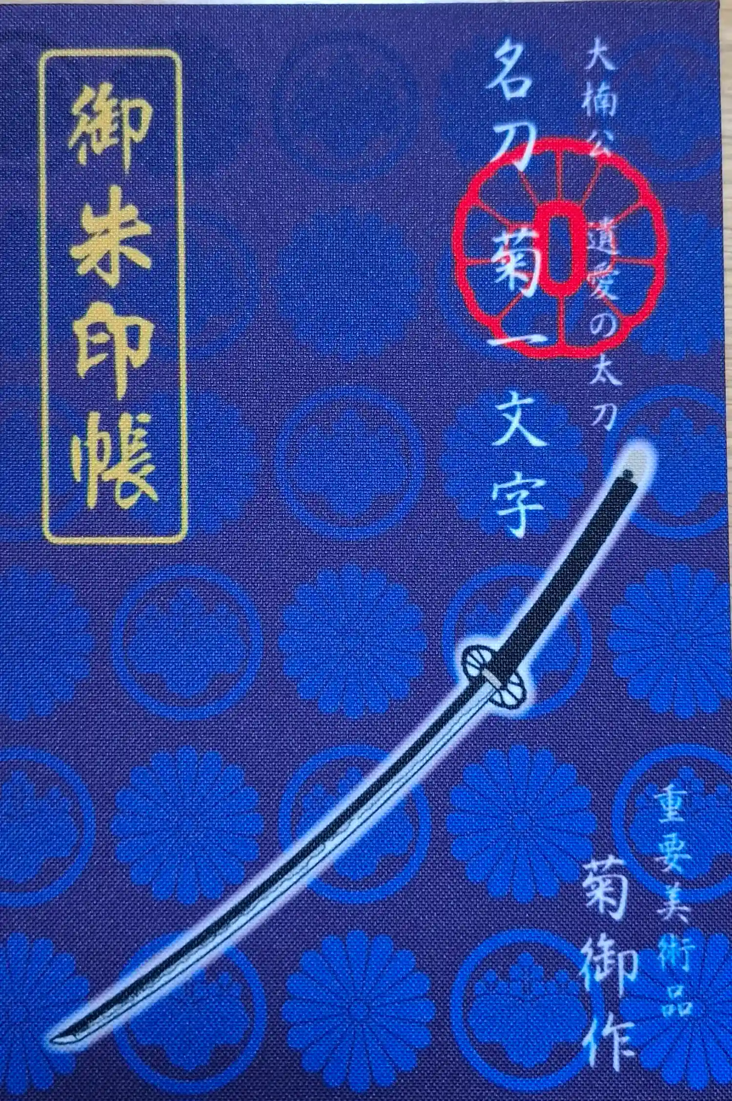 社務所で御朱印をいただく時に 社宝の名刀菊一文字があることを教えていただきました。
