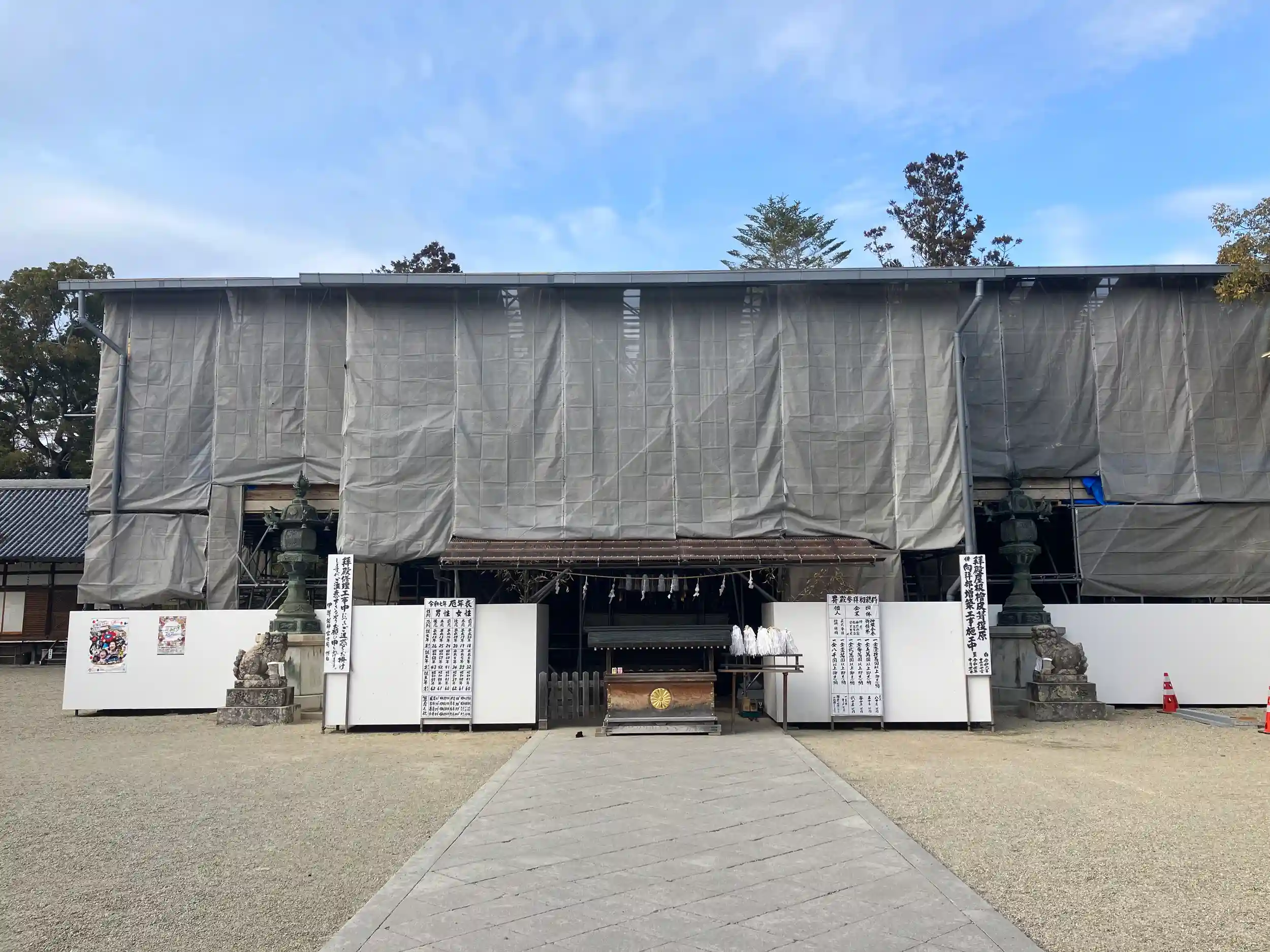拝殿が修復中だった。