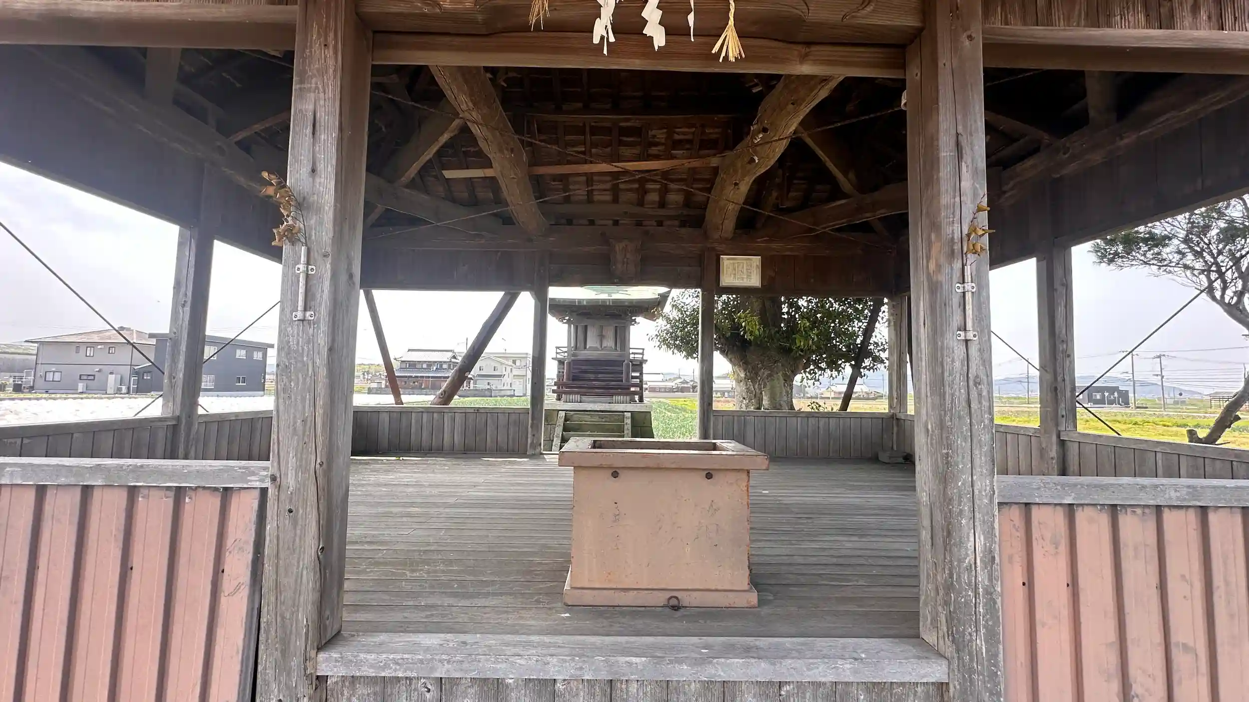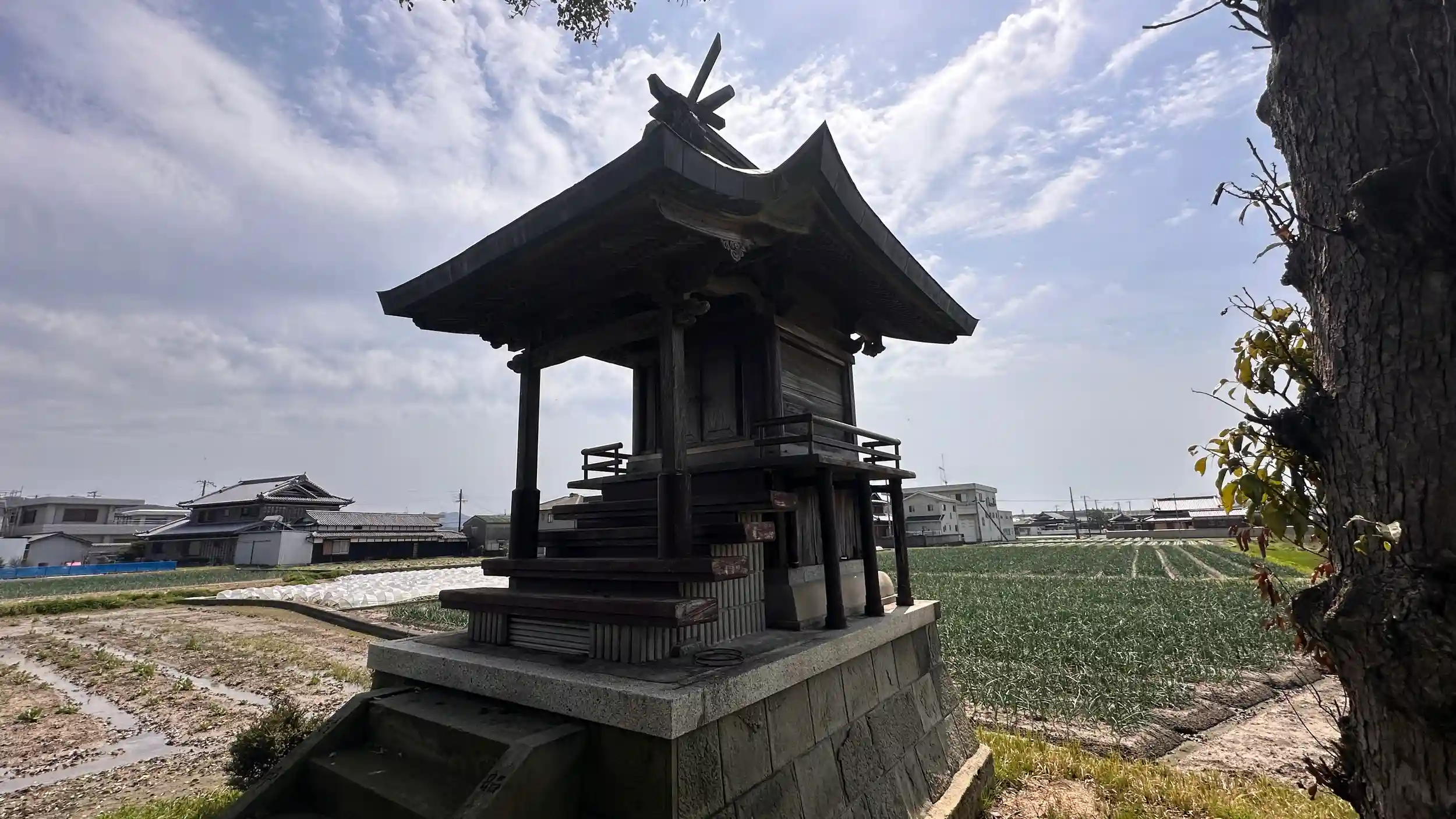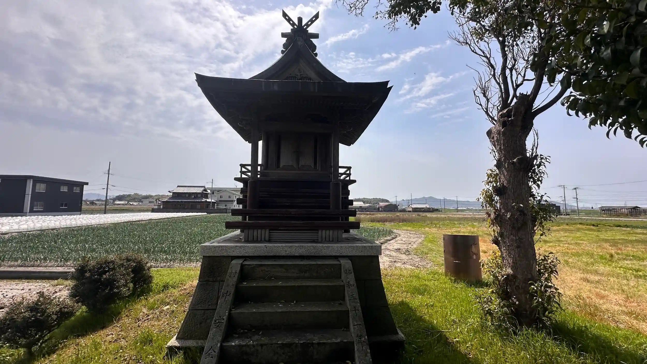 畑の真ん中に鎮座されています。小さいけれど歴史のある神社です。この地域は大和朝廷より日本古代の織物、倭文織を重宝されていました。