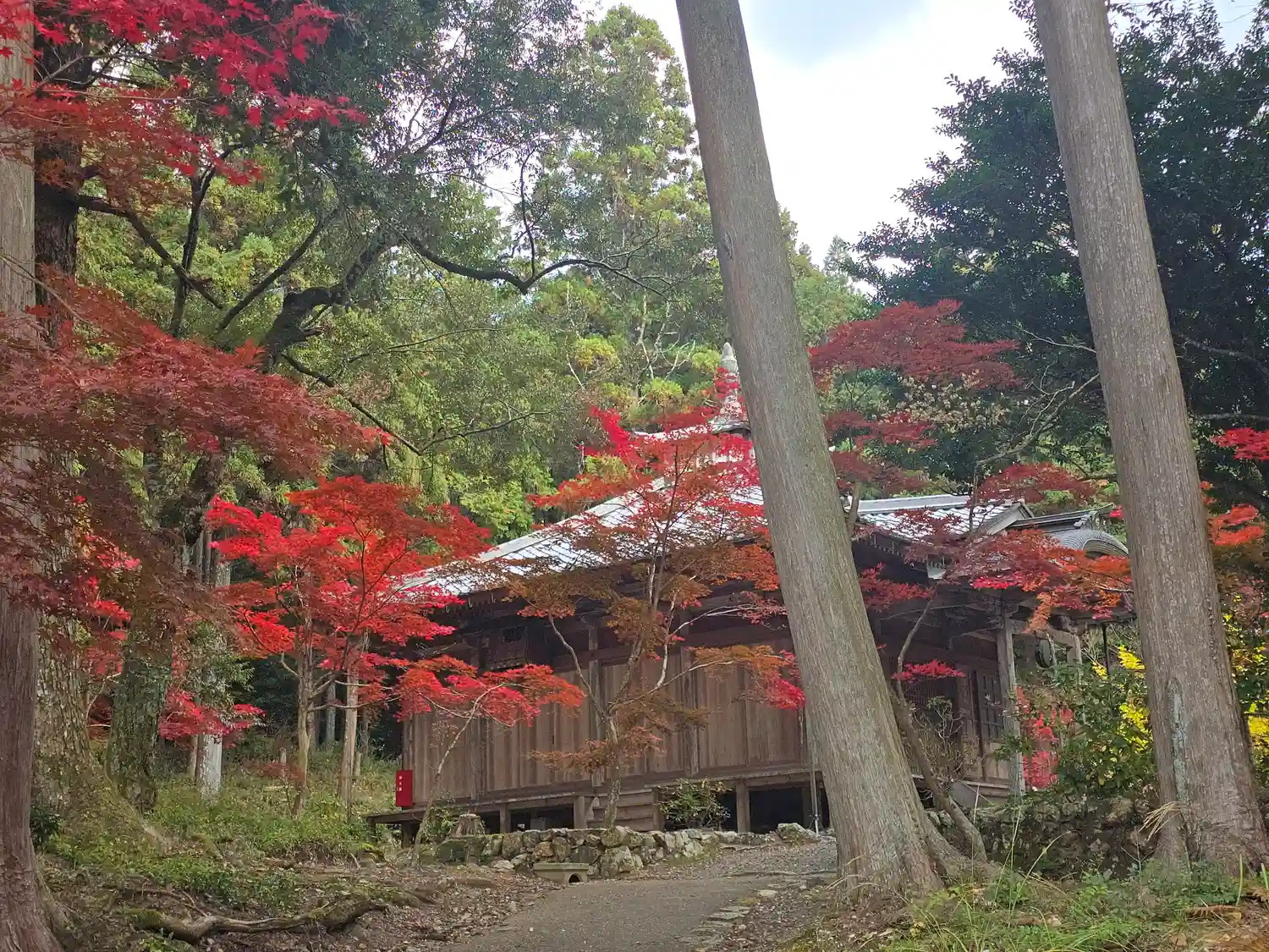 薬師堂(総本堂)。雰囲気あります。奥には熊野権現社。