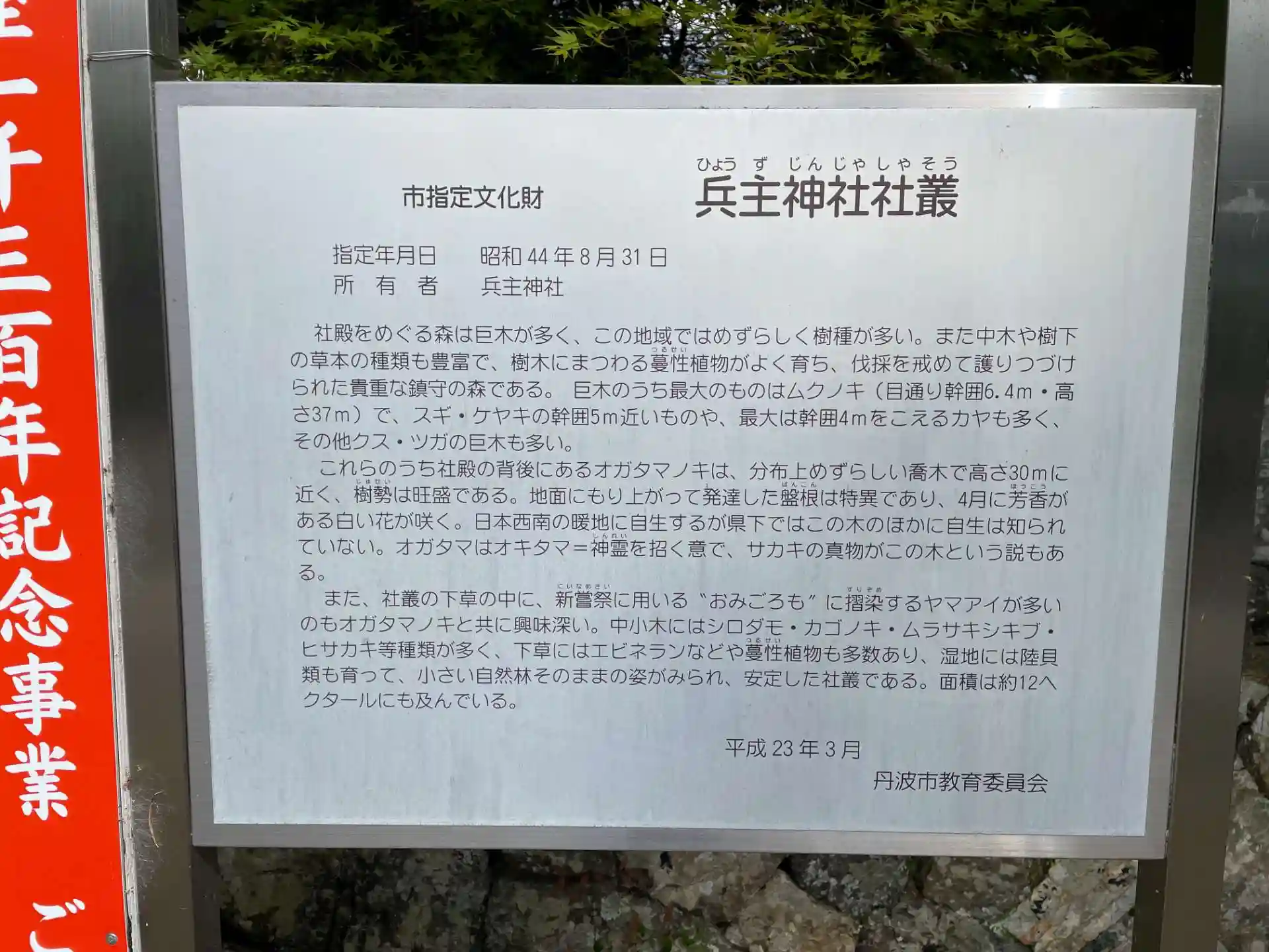 社叢(しゃそう:社殿をめぐる杜のことらしい)の案内
