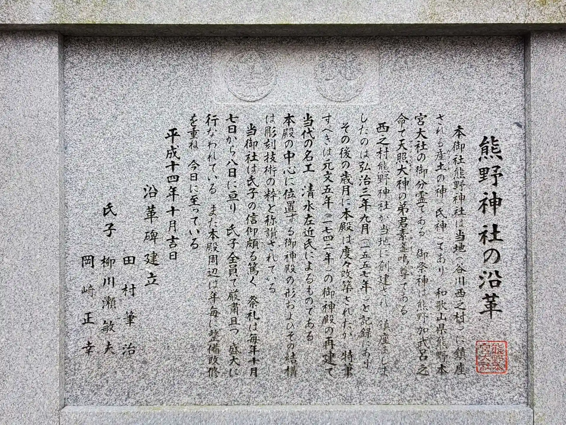 和歌山県熊野本宮大社の御分霊で、当地に鎮座したのは弘治3年9月(1557年)とのこと。