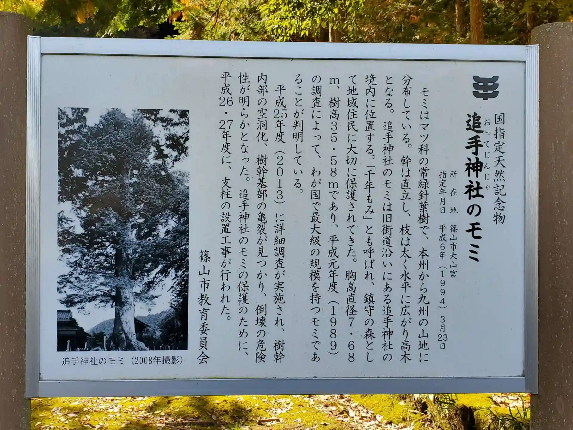 モミの木は日本一とされており、幹周7. 80m、樹高34m、樹齢は推定1000年だそうです。