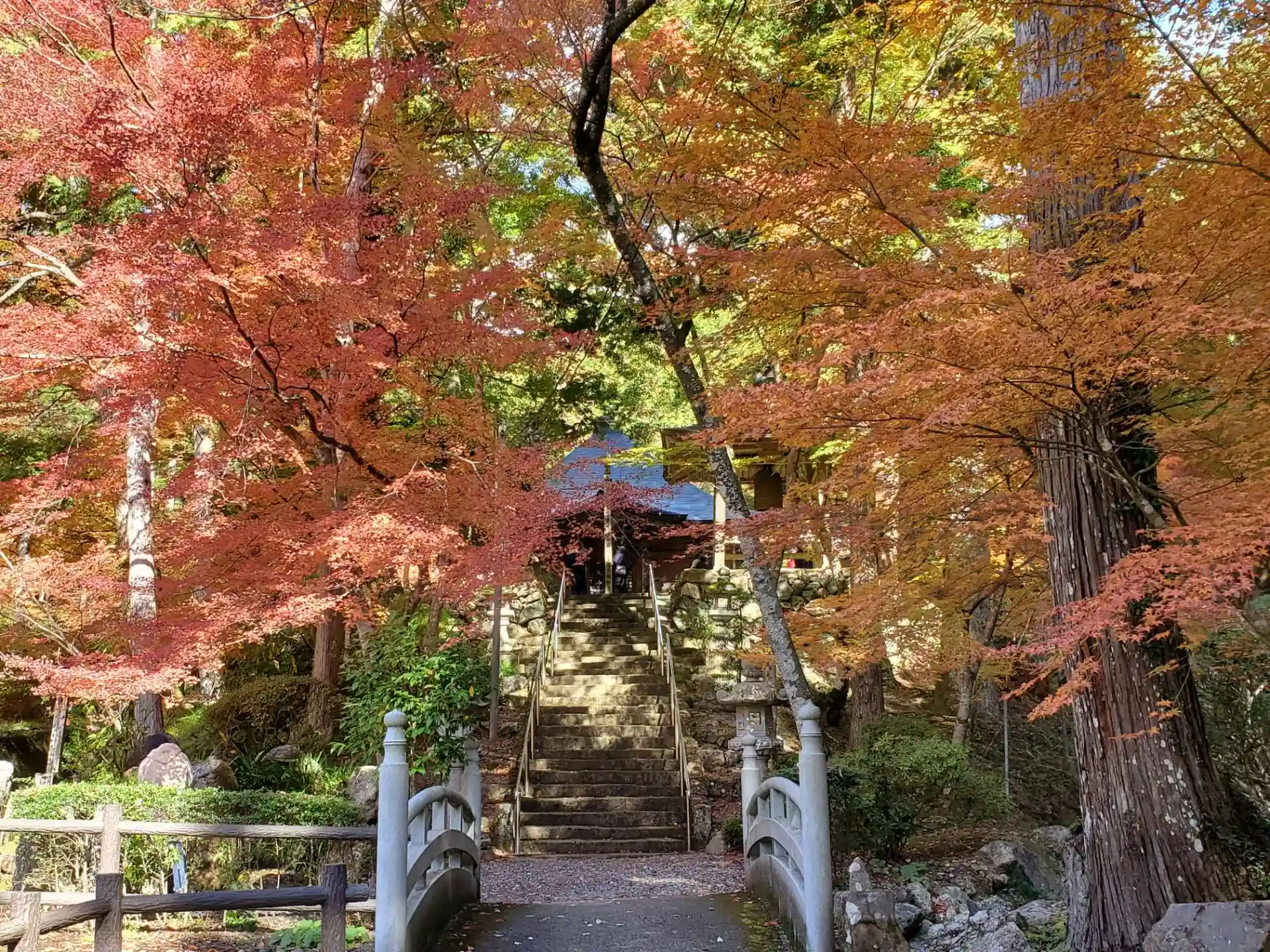 周辺の山々はまだ紅葉というところまではいってませんでしたが、高蔵寺の参道に入るとしっかり色づいていて来てよかったという感じでした。