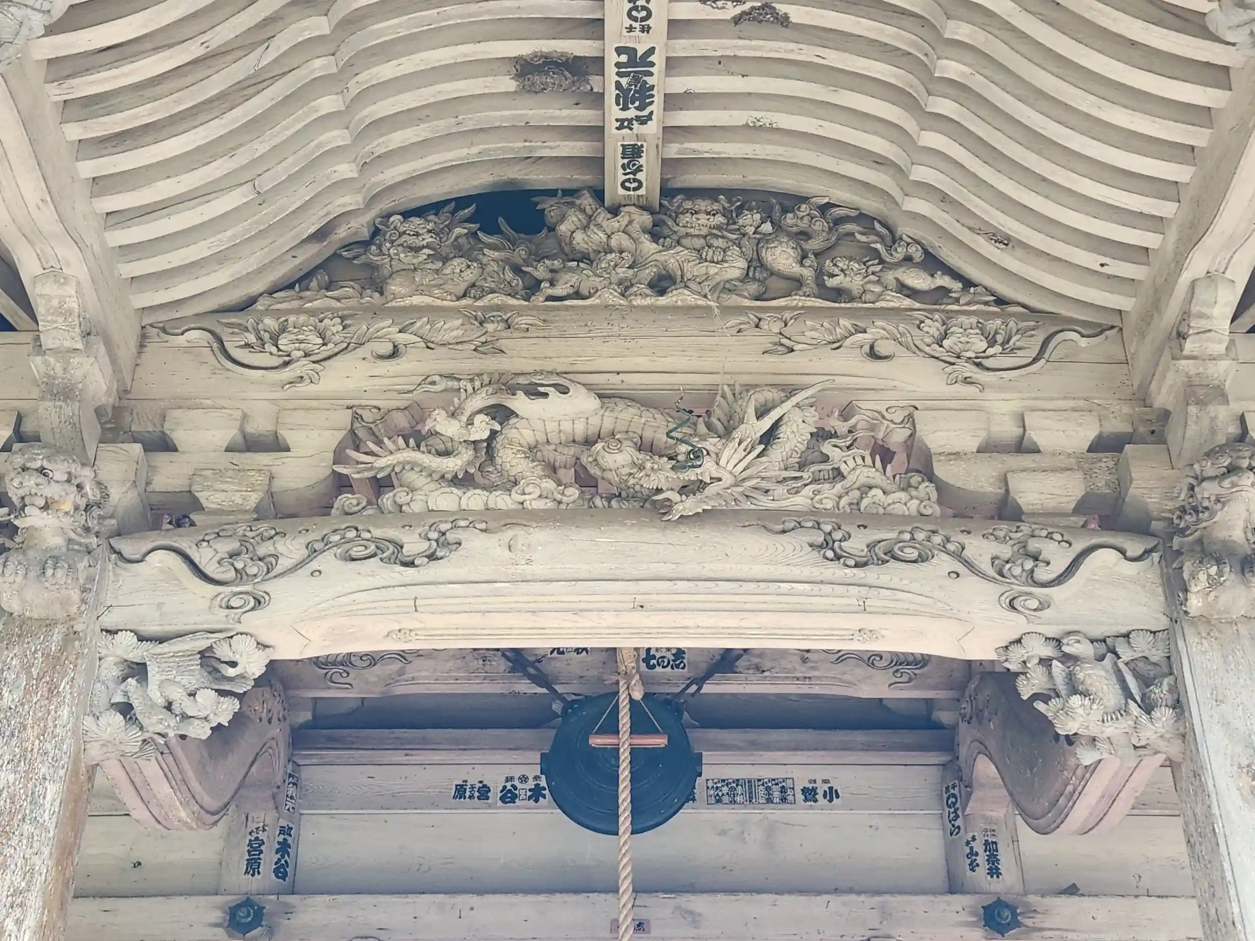 向拝の龍や獅子の彫刻