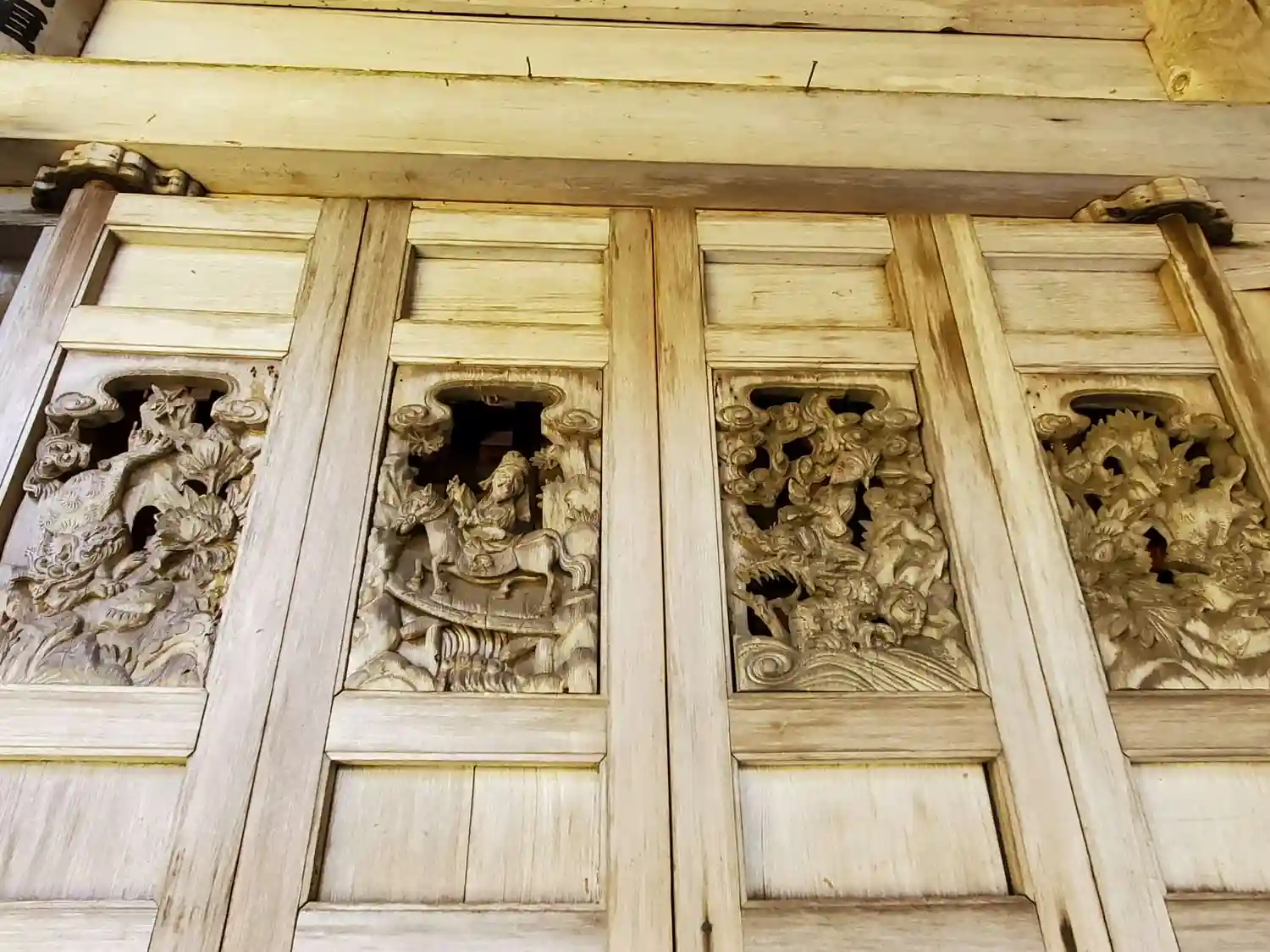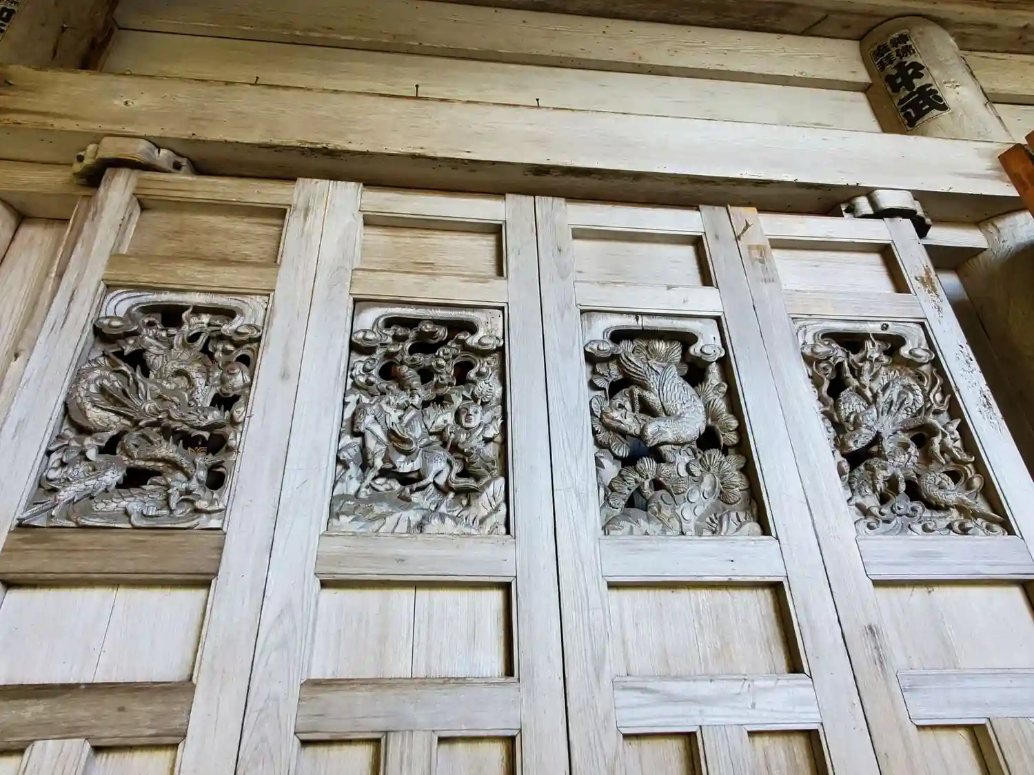 本堂の正面扉の彫刻(右側4枚)