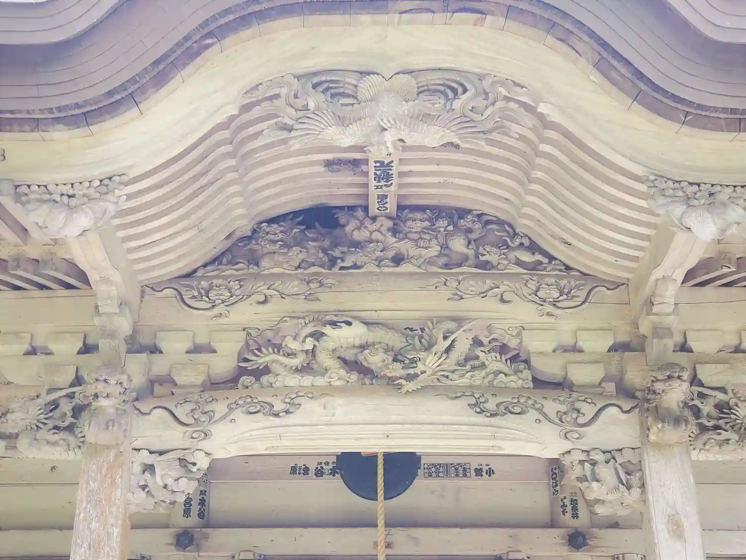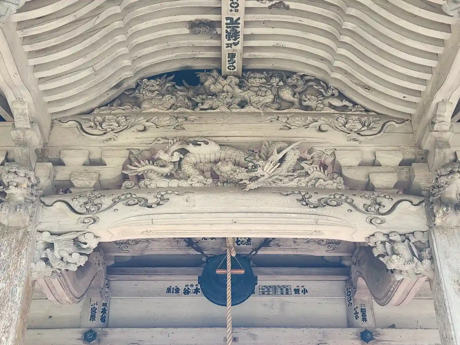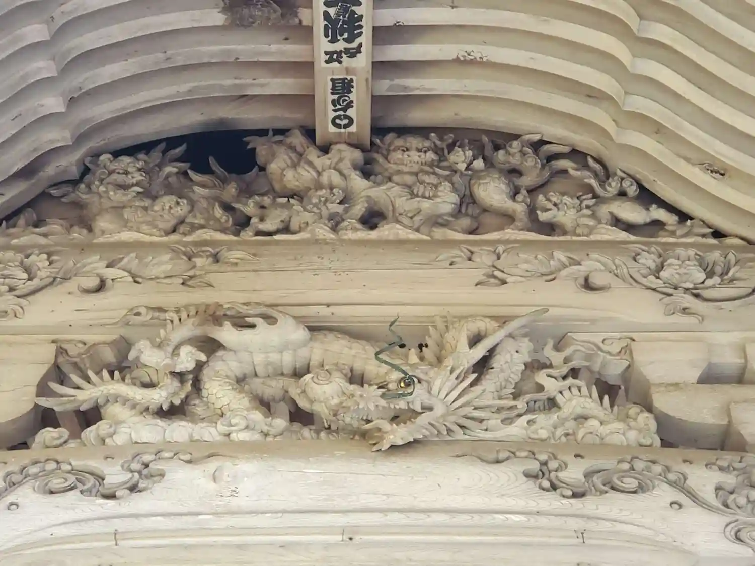 向拝の龍や獅子の彫刻