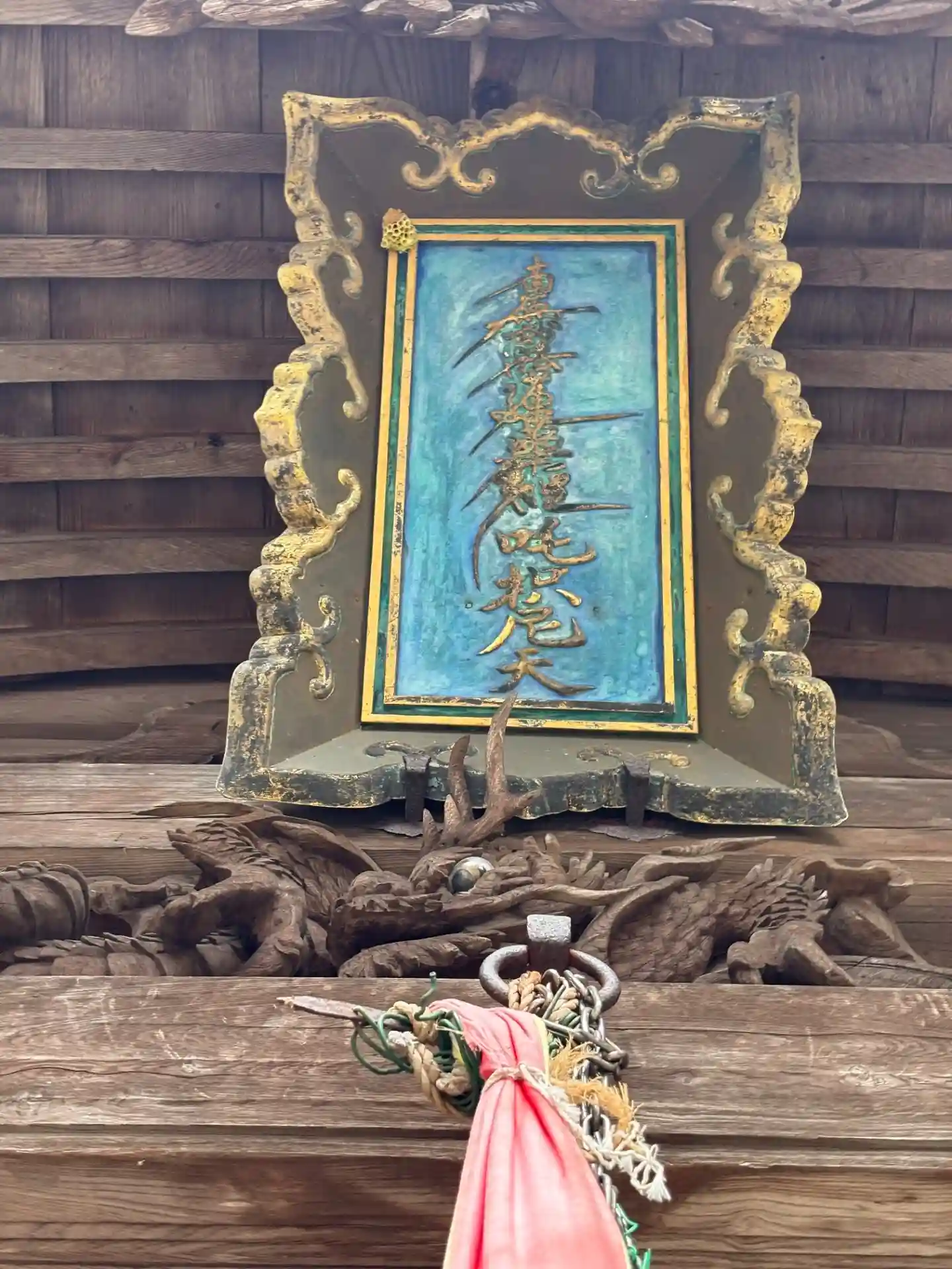 扁額の縁が桜の花で飾られています