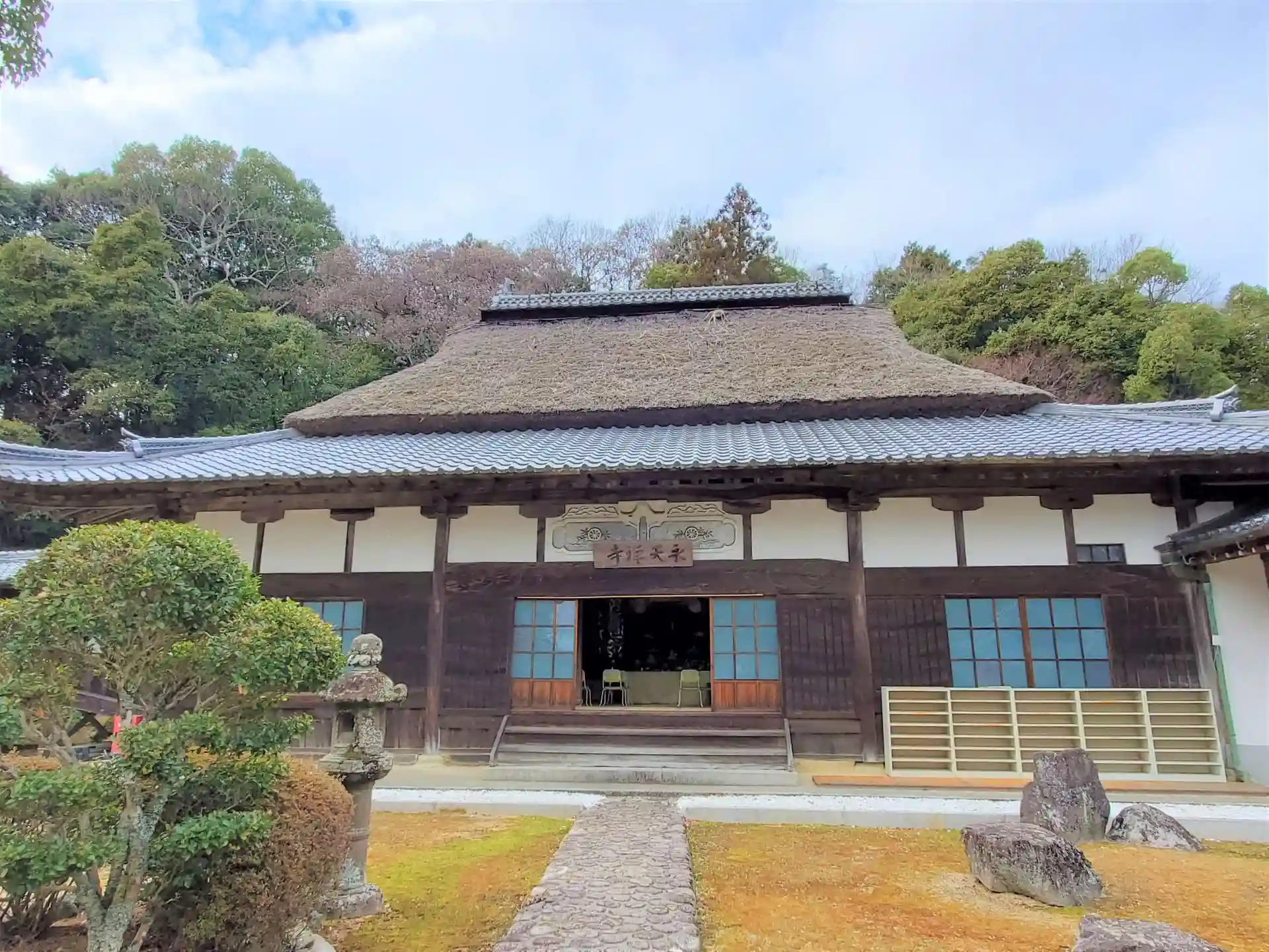 茅葺き屋根の本堂と山門の四天王が印象的なお寺です。