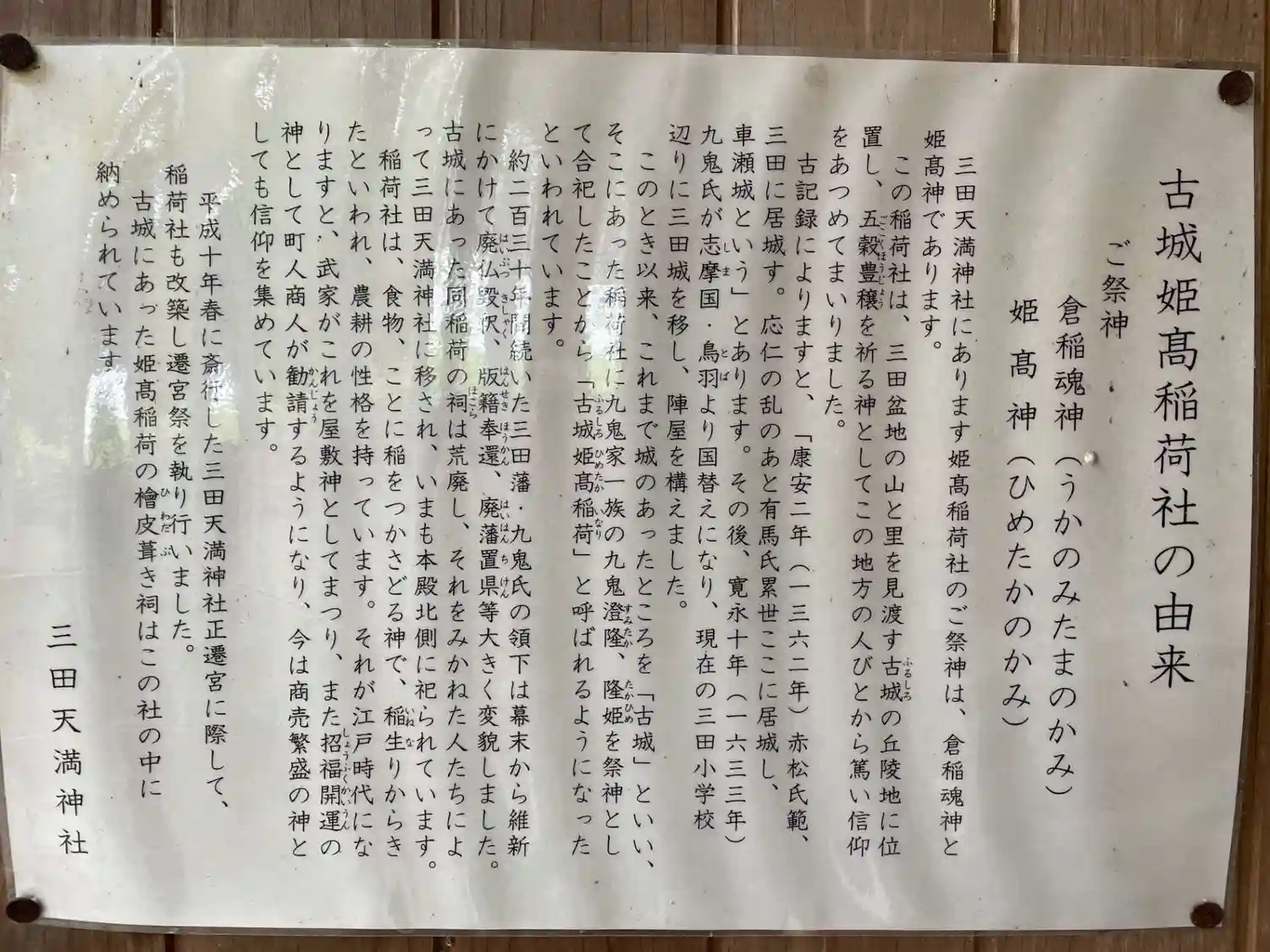 千数百年前、大歳大神(農業神)をお祀りする三田神祠だ…