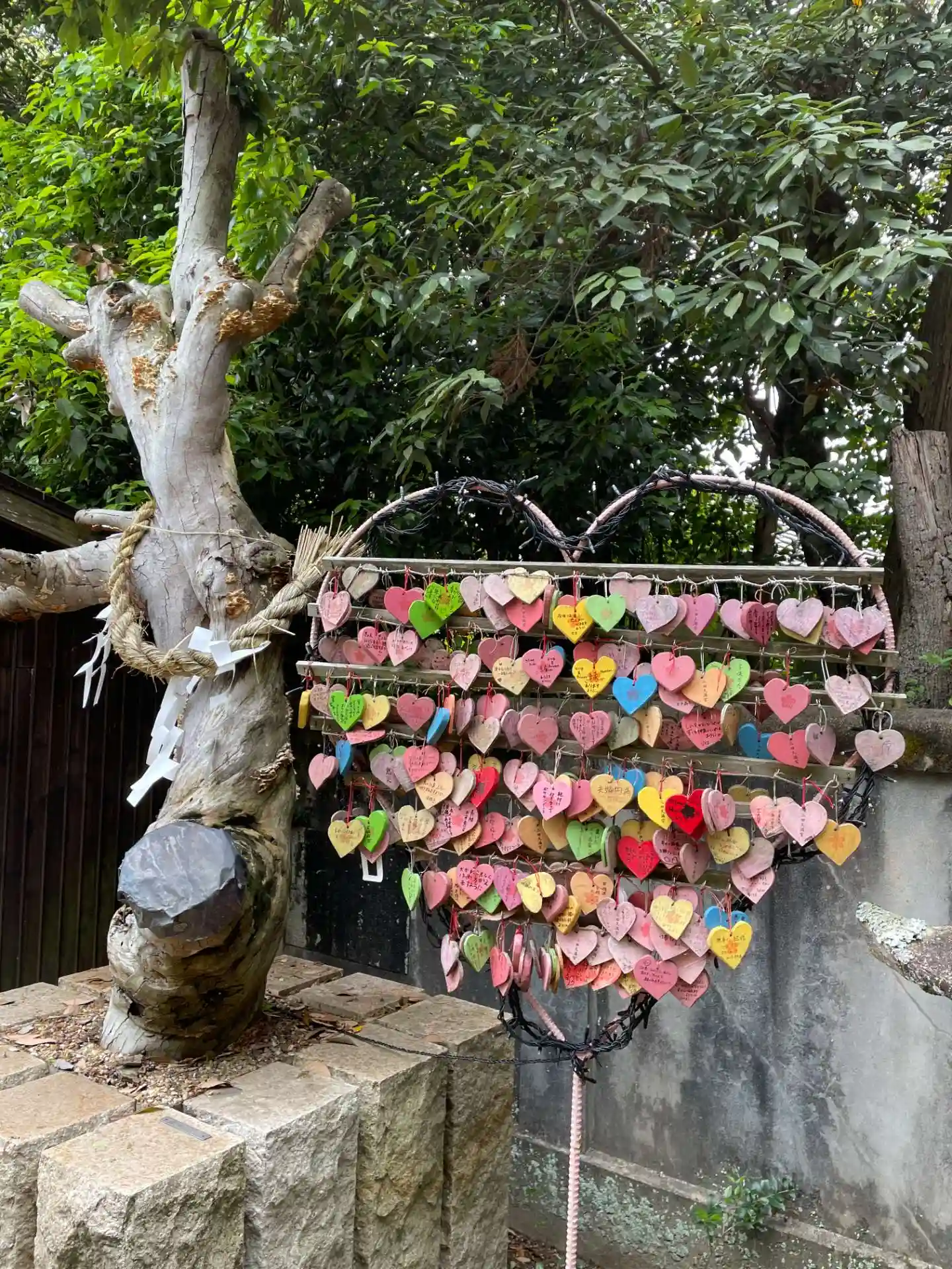 手前には素盞鳴尊社と意志神社。ご神体の石にコインがうまく乗ると意志を貫けるそうです。成功!!