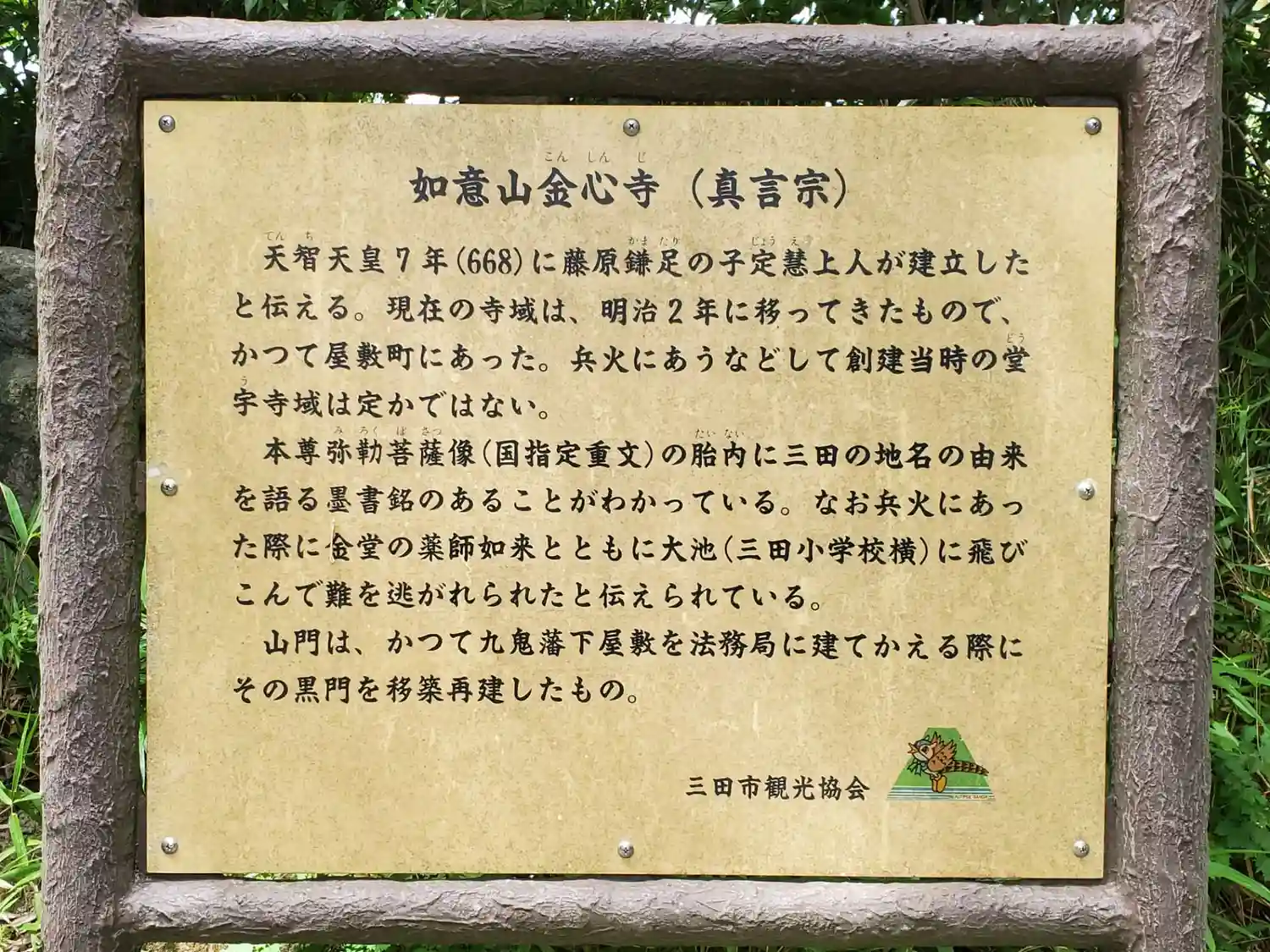 | ご由緒 | 金心寺は、藤原鎌足の子供とされる定恵上人が兄である有間皇子の菩提を弔う為に開いたのが始まりと伝えられています。 |