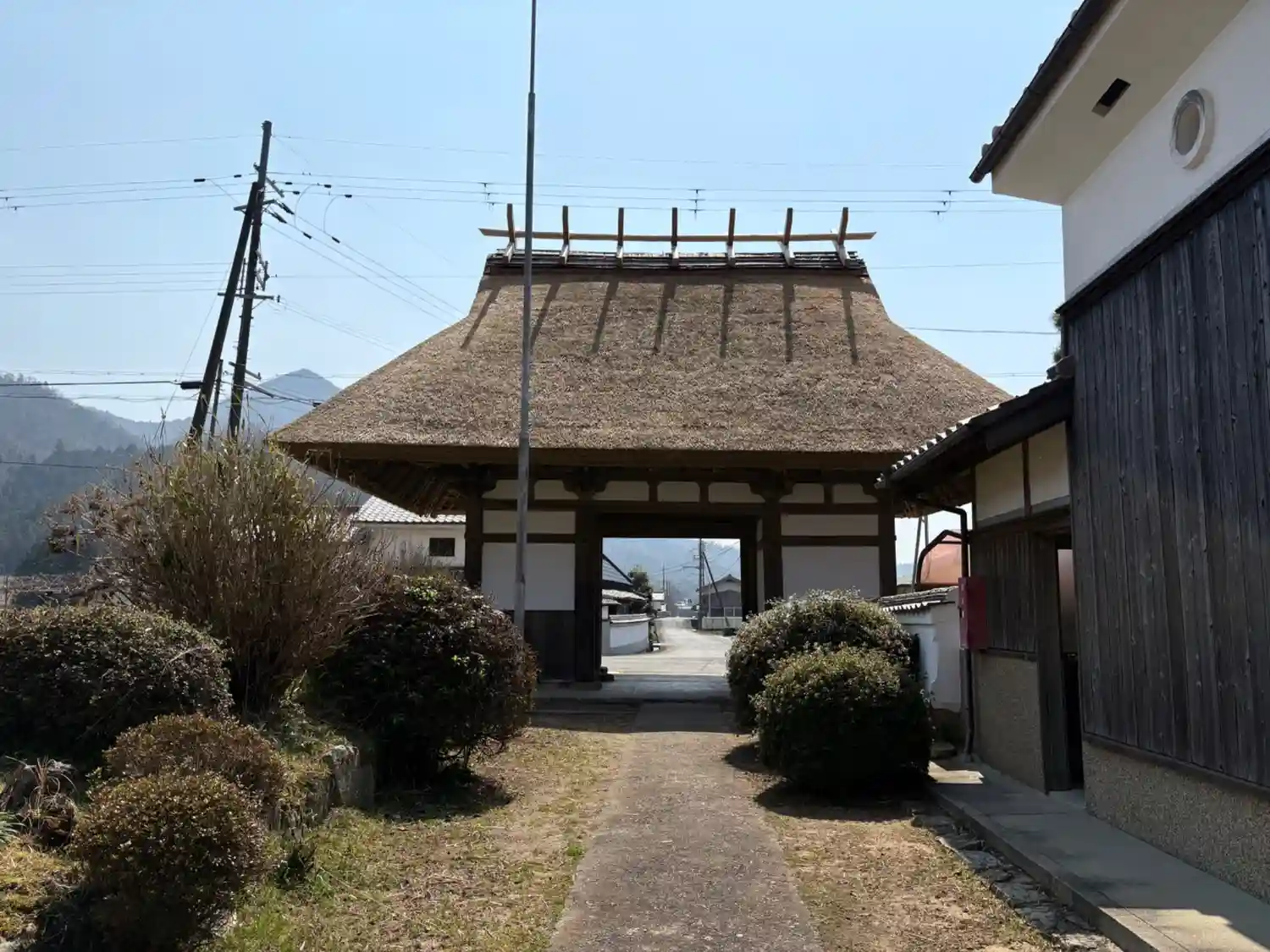 歴史を感じさせる、山門?ですね。瓦葺き?