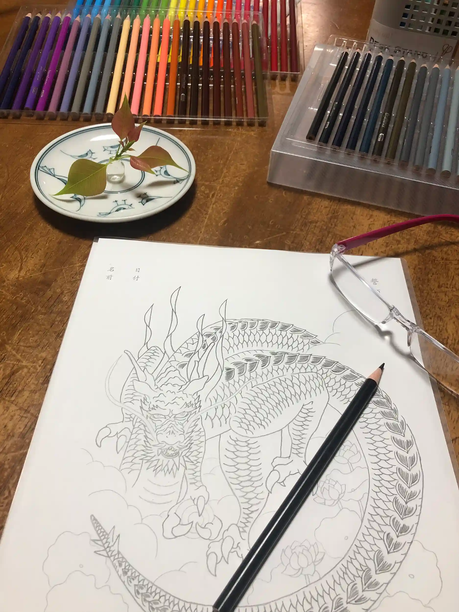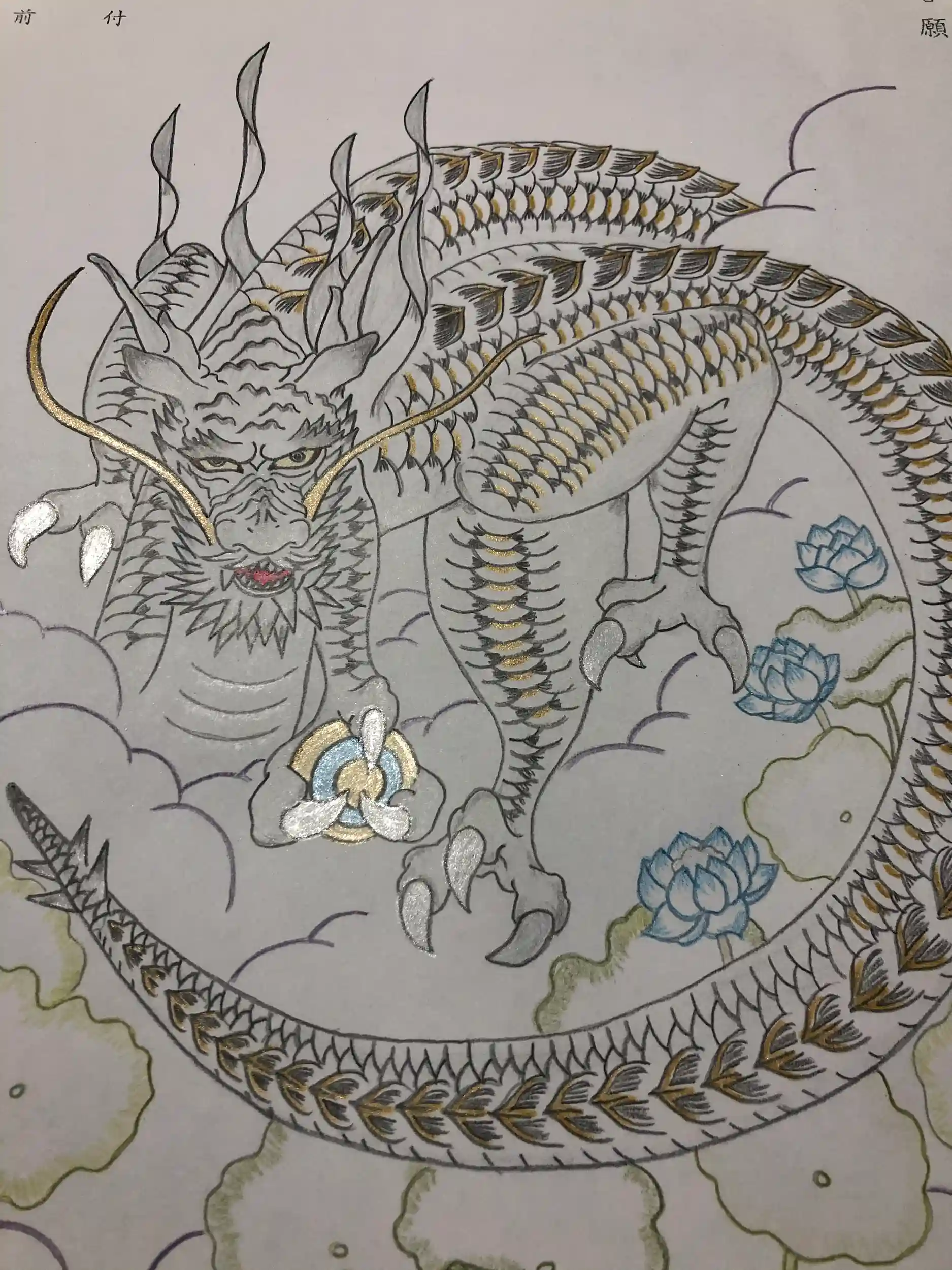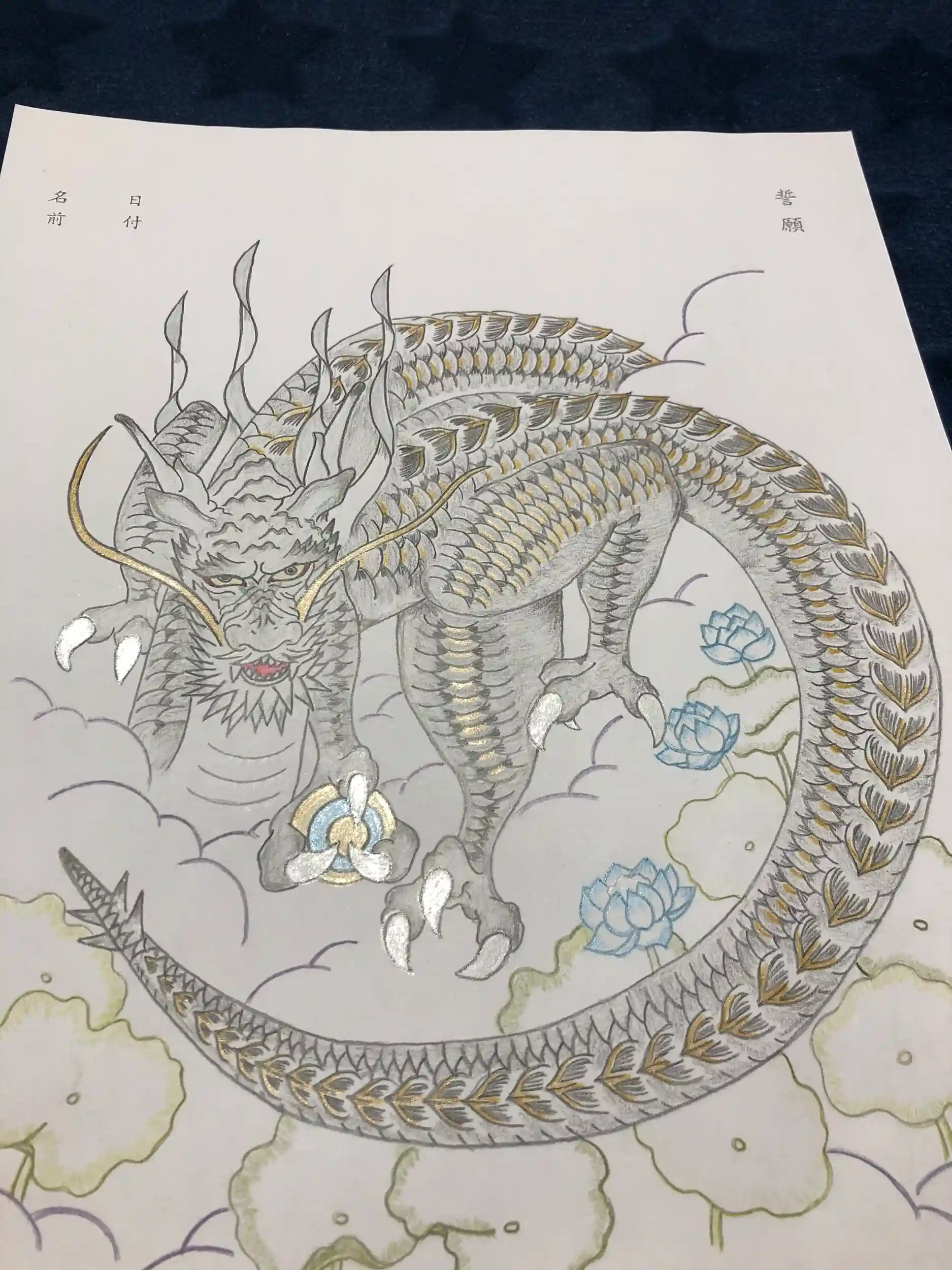 青龍さまにしようかと思ったけど、やっぱり三原色で塗り塗りしてます〜🤗🌸