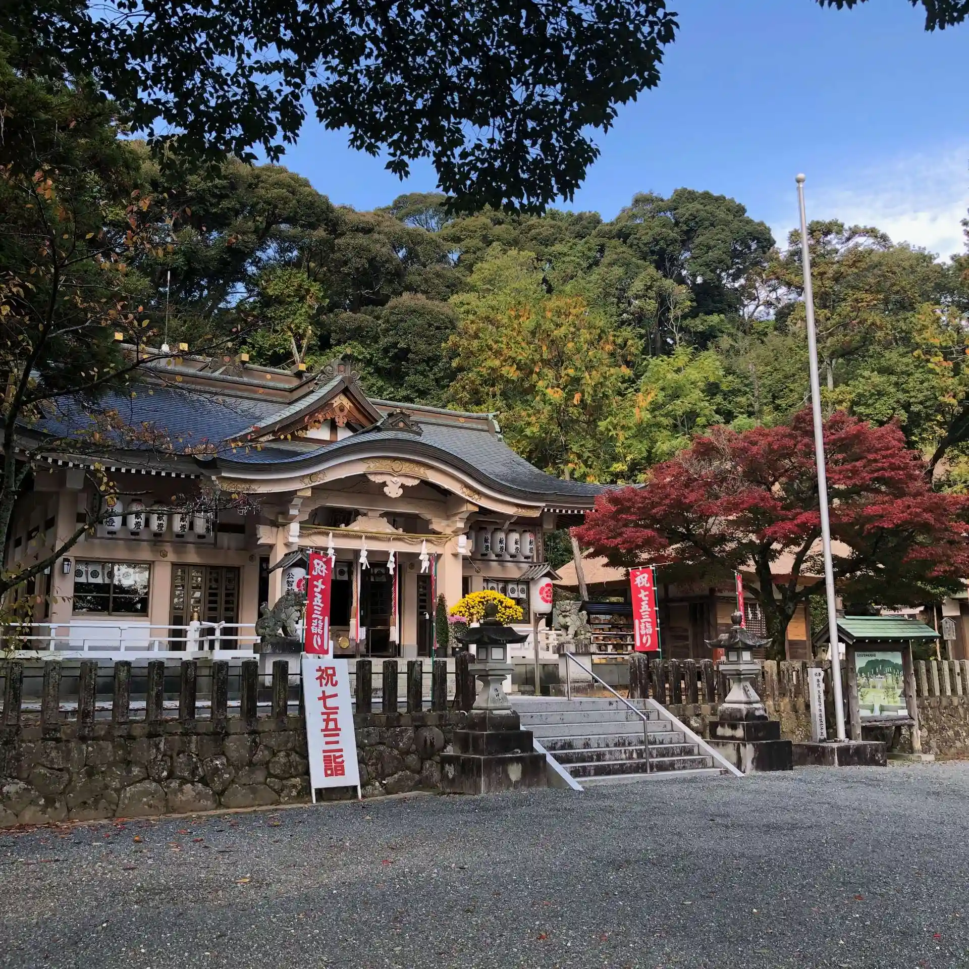 今週末が七五三詣でのピークになりそうです。紅葉も深まってきました。