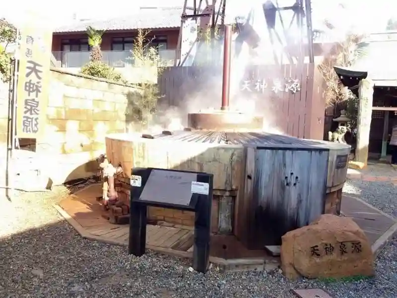 鳥居をくぐるとまず目に飛び込んでくるのが、天神泉源。