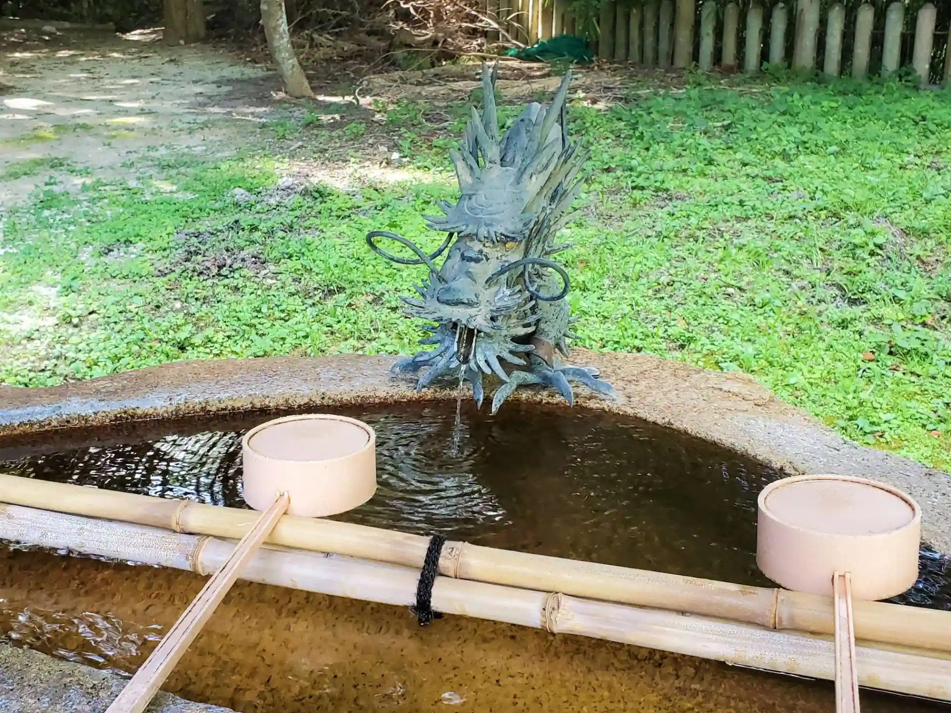 市杵島姫社周りの、池があって、橋を渡った向こう側に神社があって、灯籠があり木やシダが茂っている雰囲気、それから彫刻も🐉素敵過ぎて好きです🥰