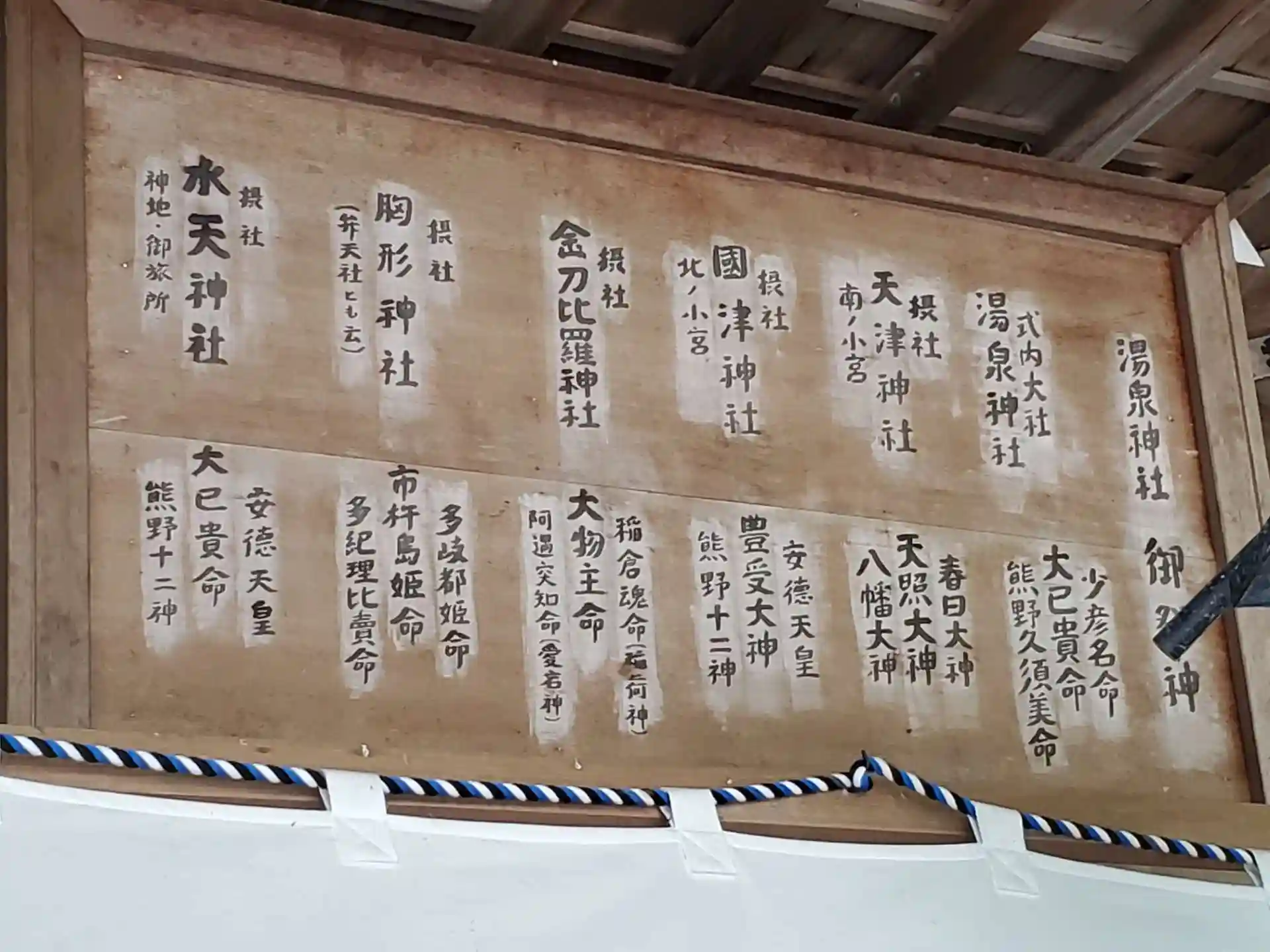 拝殿右上には、摂社を含めた御祭神
