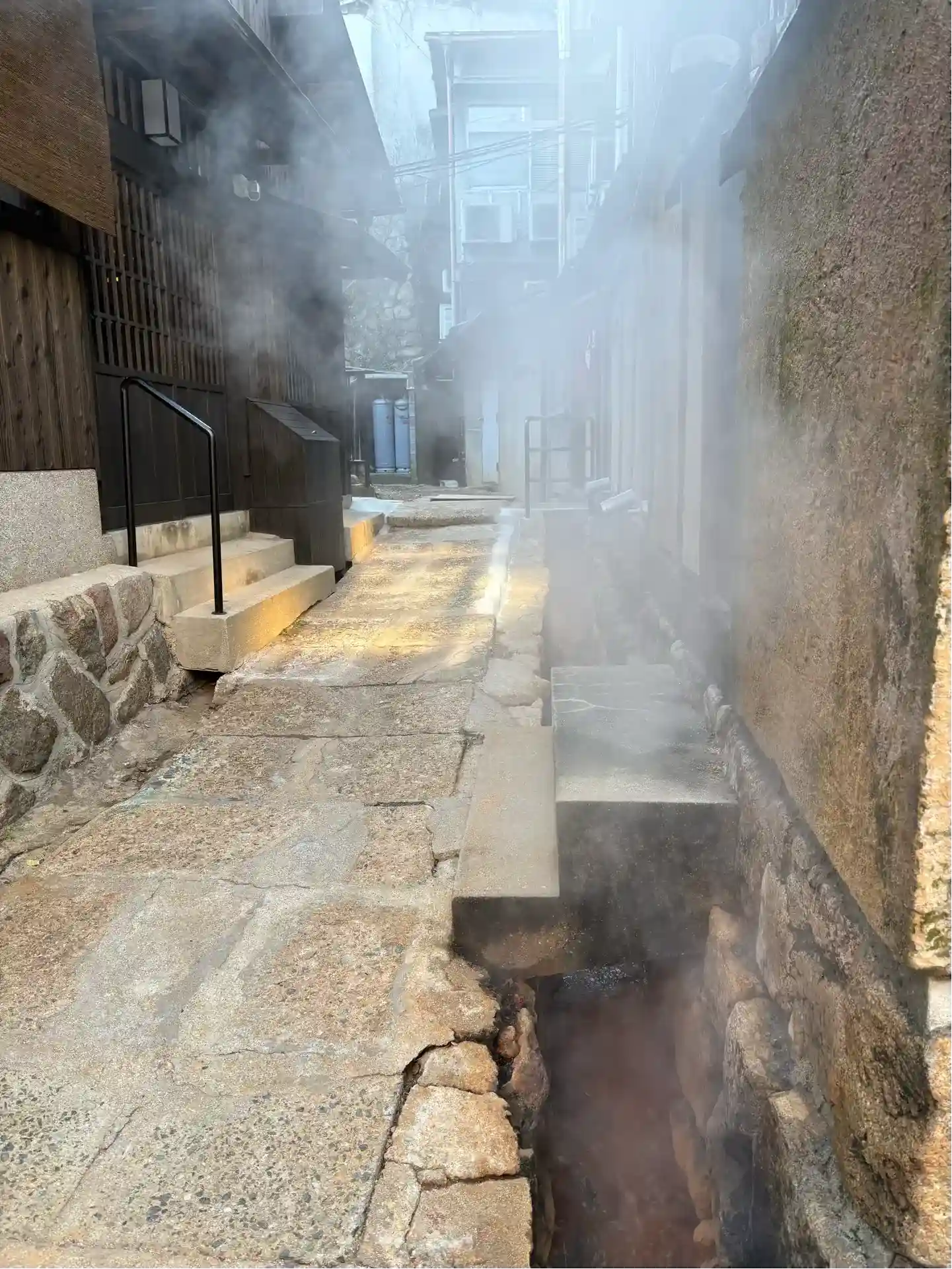 この近辺では、道端から温泉?の湯気が出ているところもあります。