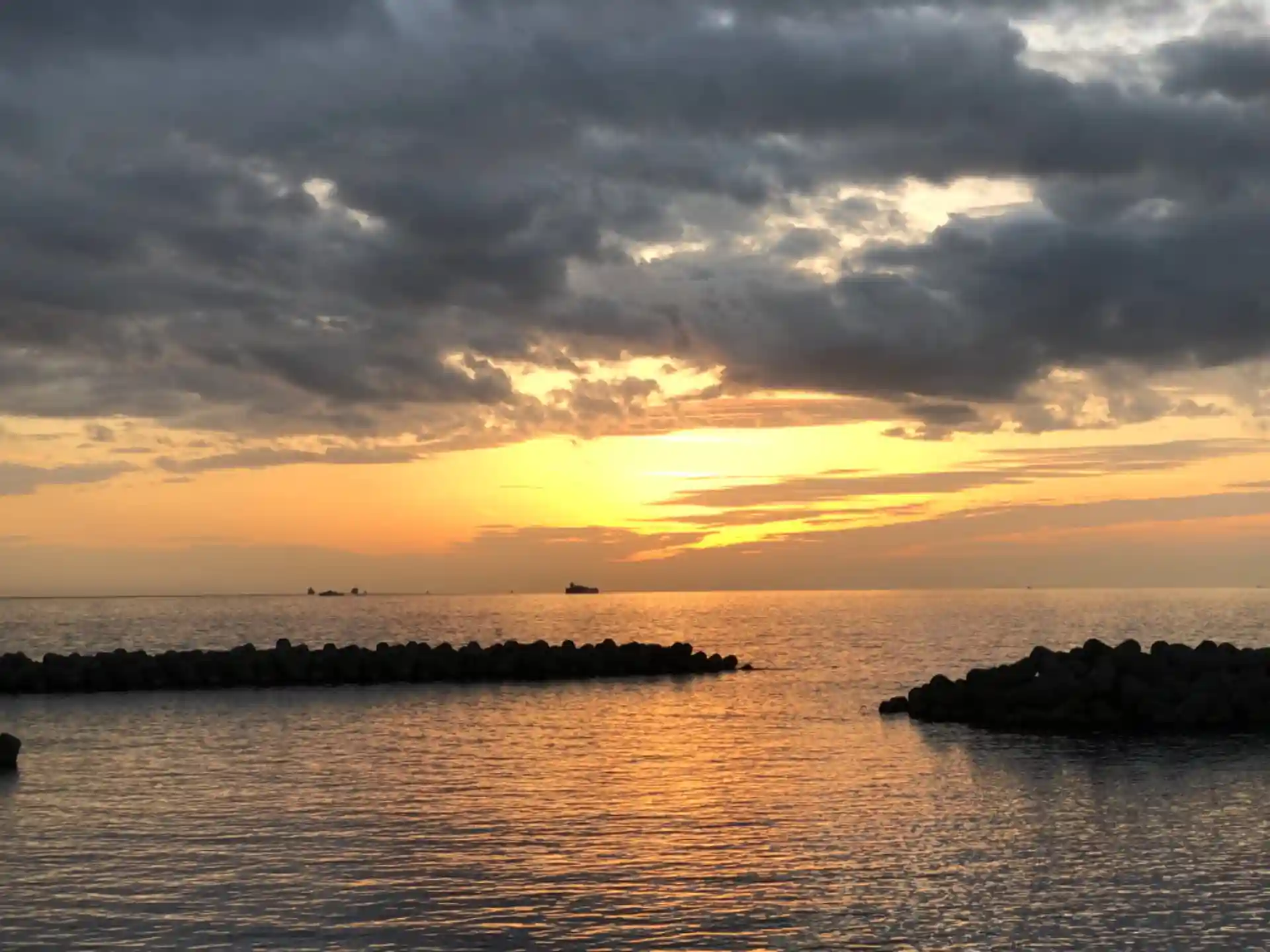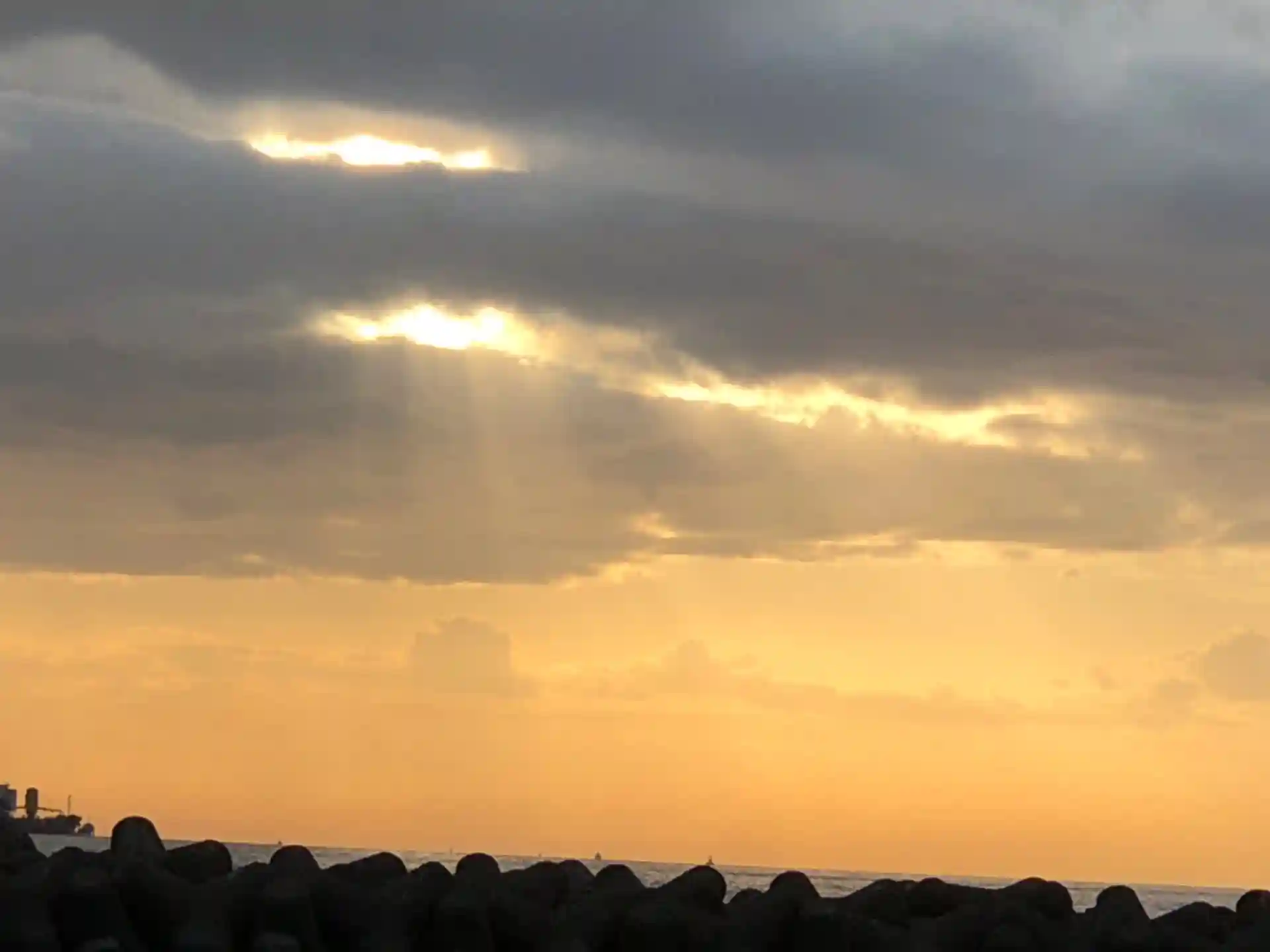 御光が差すような夕焼けです。