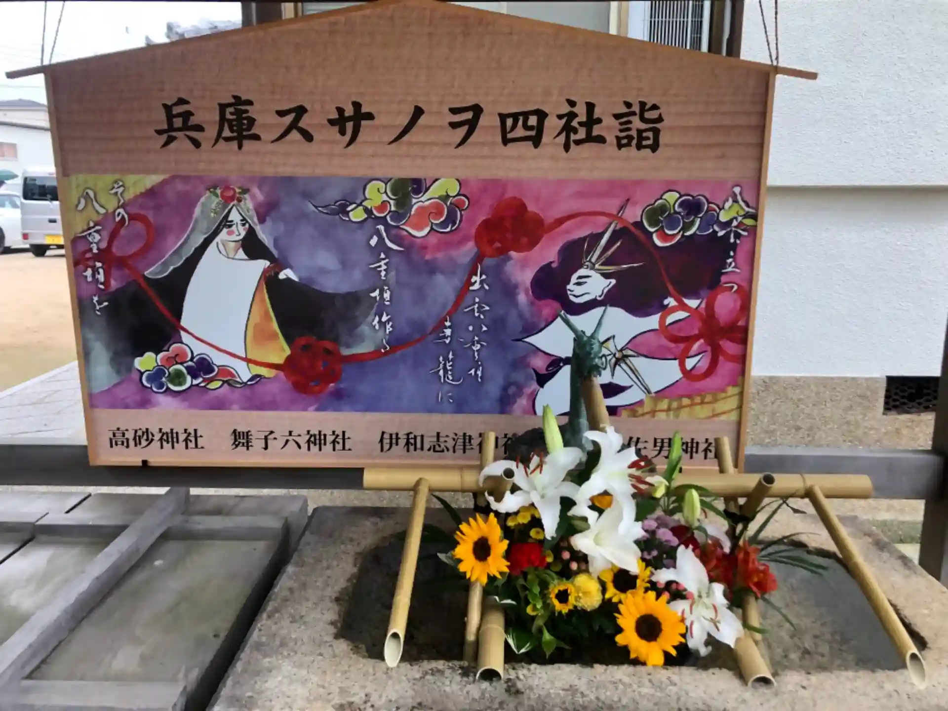 花手水と兵庫スサノオ四社詣りの絵馬