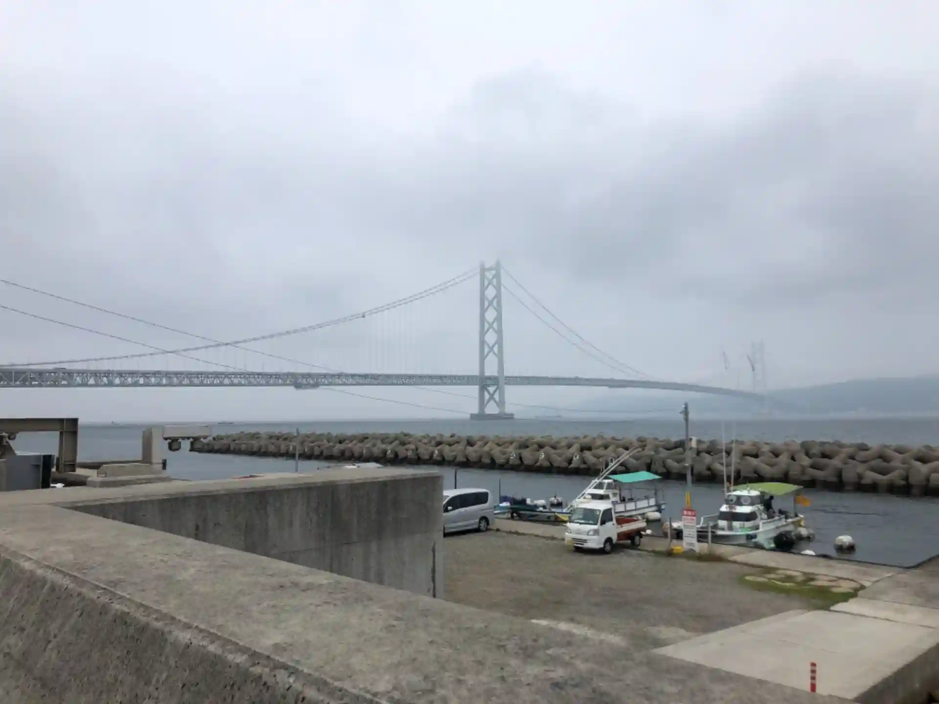 今日の明石海峡大橋と淡路島。