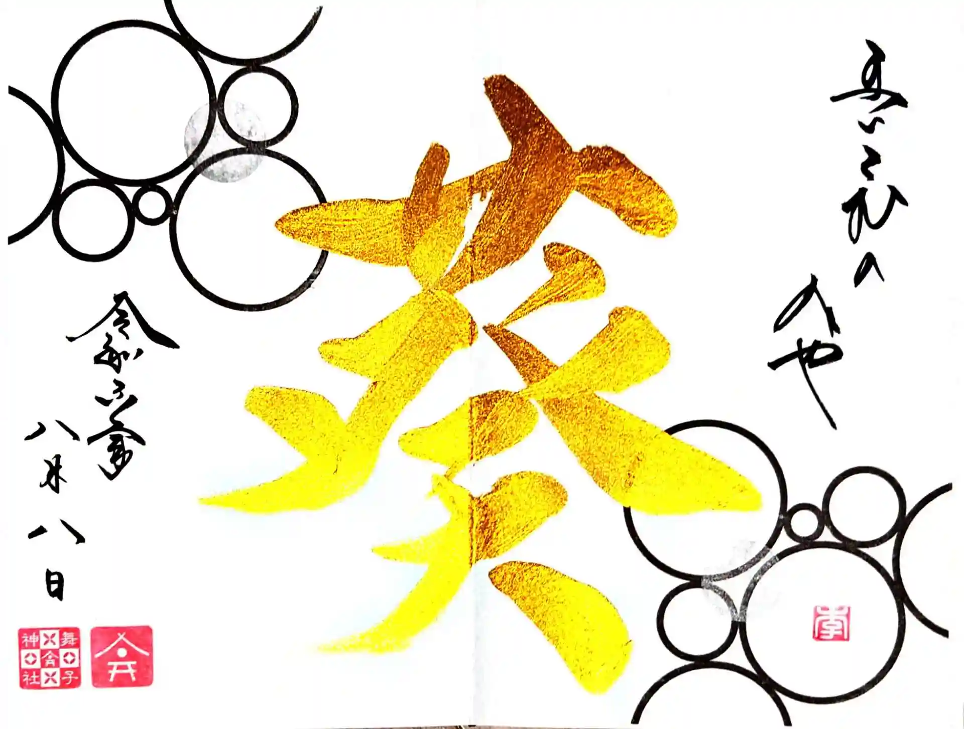 舞子六神社の2024年8月の一文字御朱印「葵」とコトバ御朱印です。