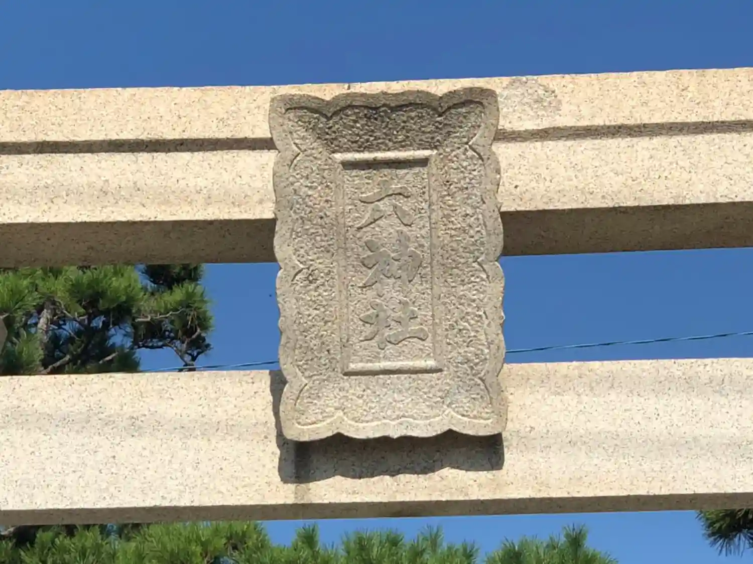 鳥居と松と空の青さが非常にマッチしてます。海側から見た神社です。
