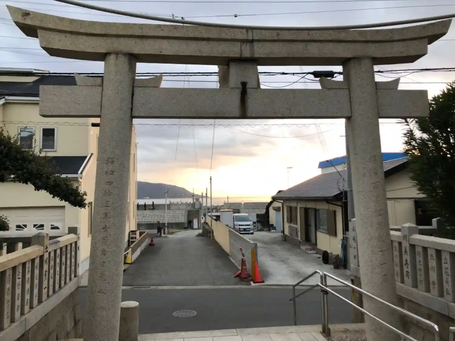 鳥居を抜けると海と明石大橋が見え、景色のいい場所…