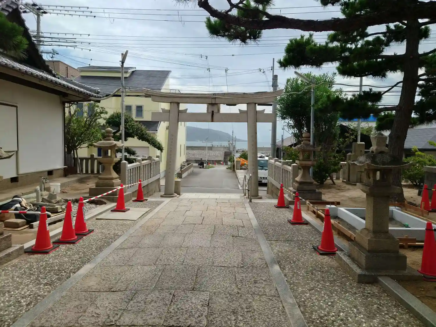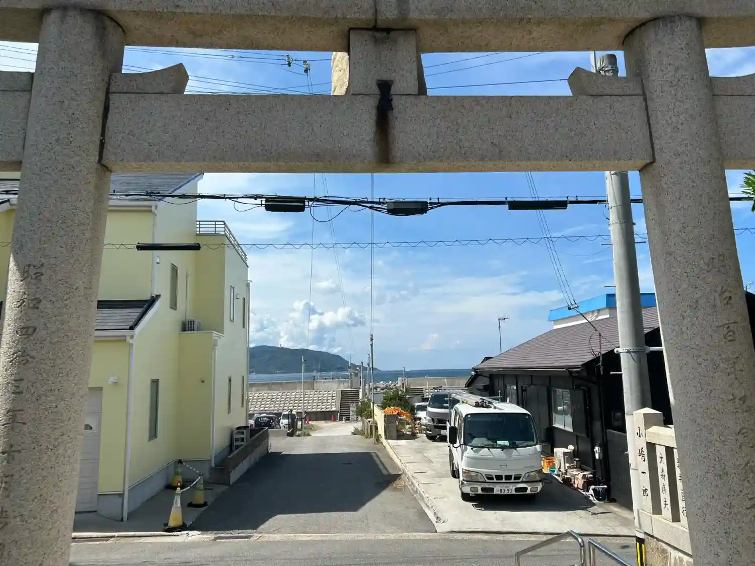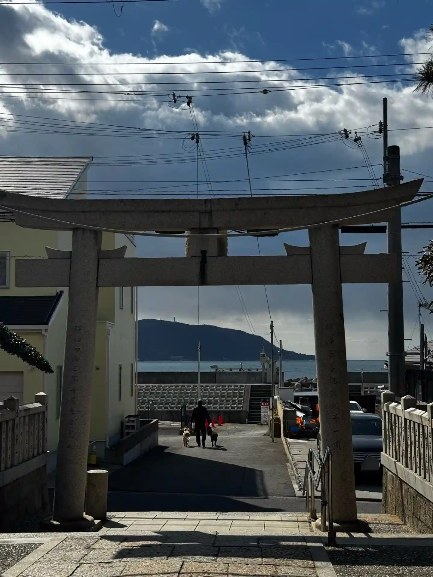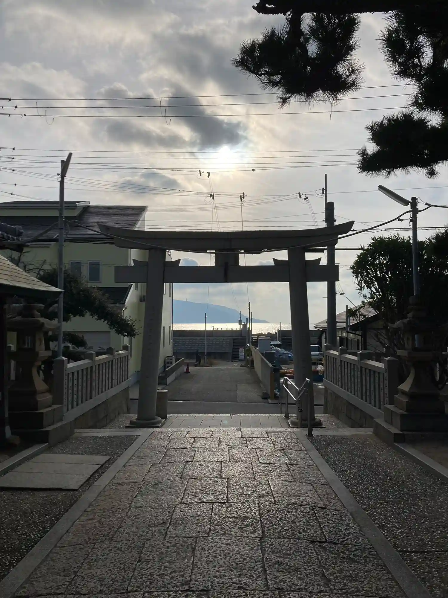 鳥居を抜けると海と明石大橋が見え、景色のいい場所…