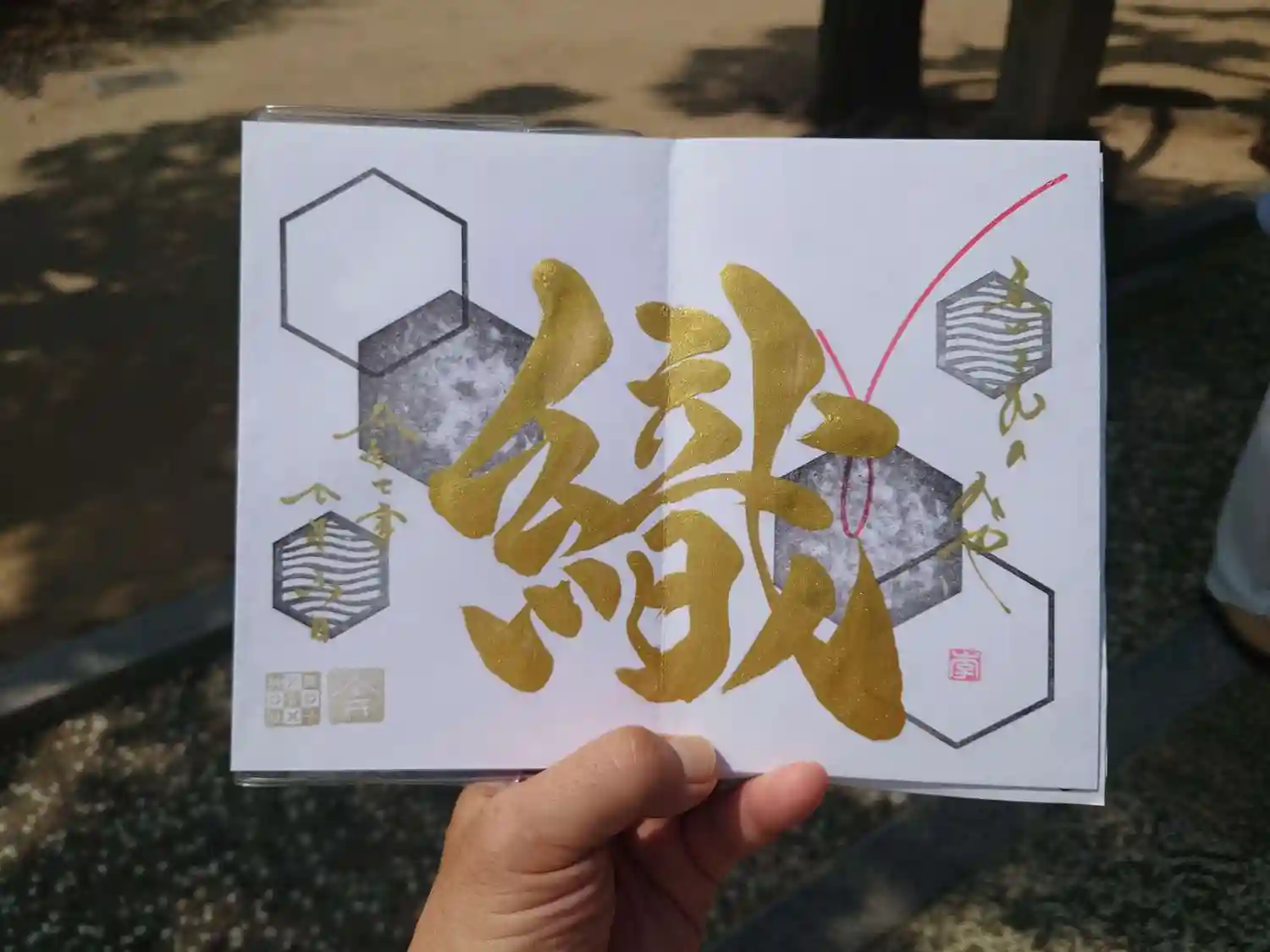 見開きサイズで綺麗な御朱印は直書きです!