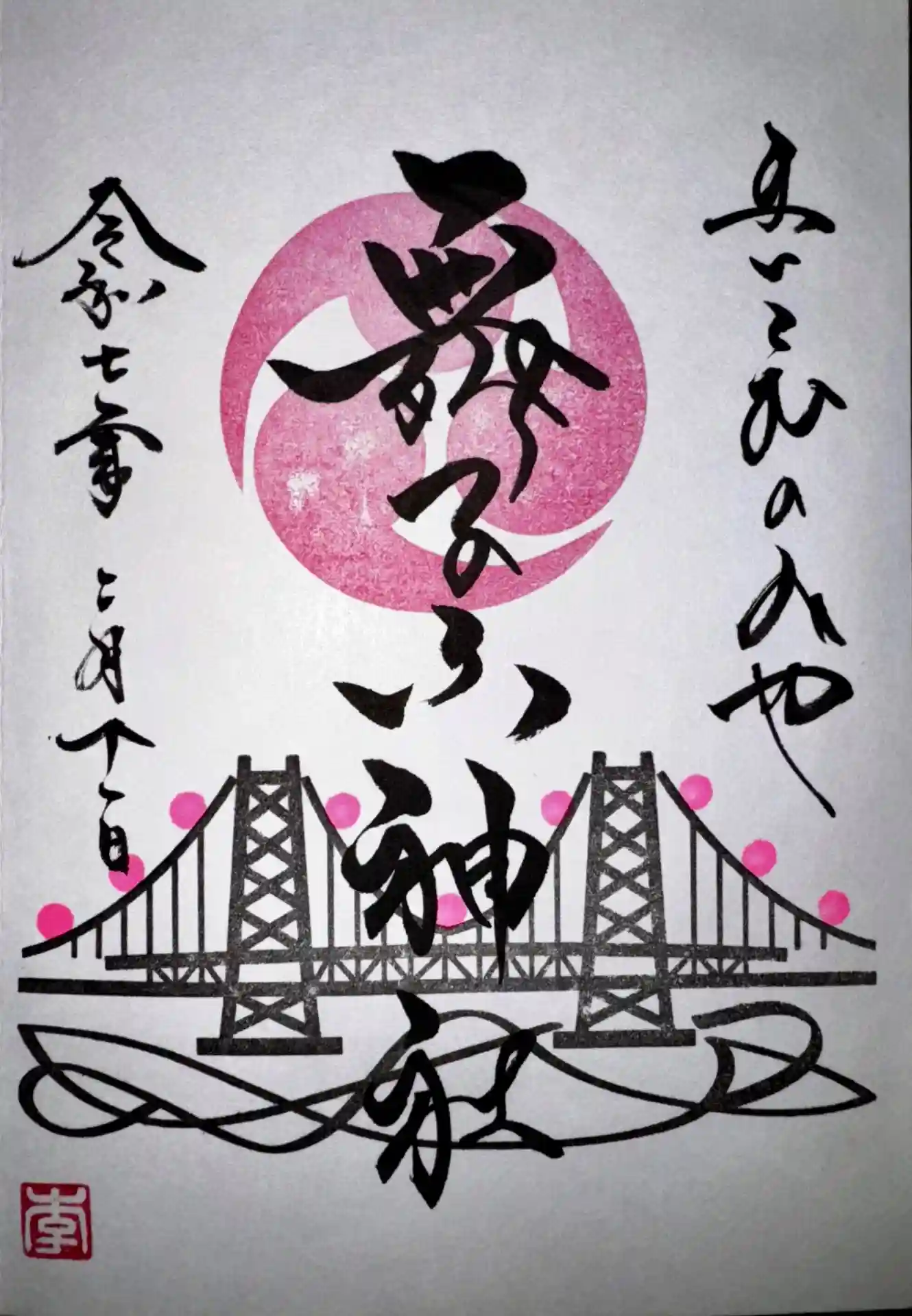 まさか家の近くに素敵な神社がありました。月替わりの御朱印があるようです。明石大橋も見えます!