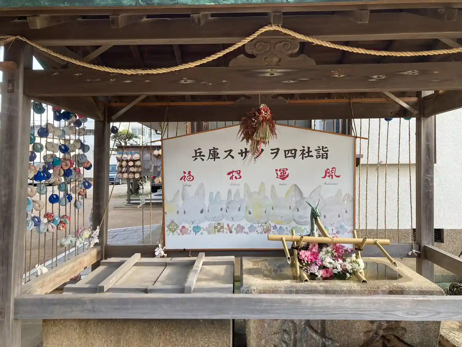 手水の後ろの絵馬は、令和五年の四社詣の卯ですね