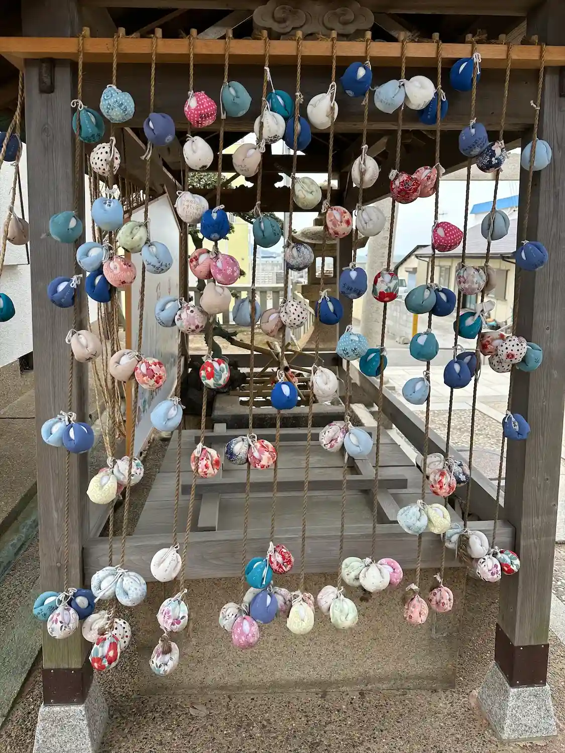 お守りがたくさん吊るされてオブジェのようです