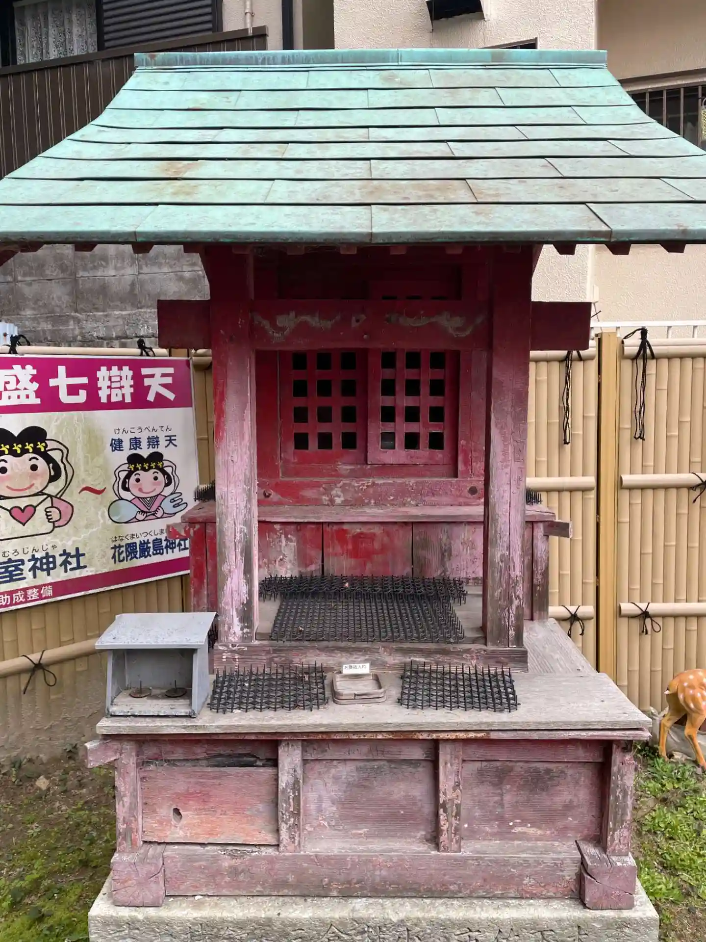 トタン板の前に鳥居がありました。