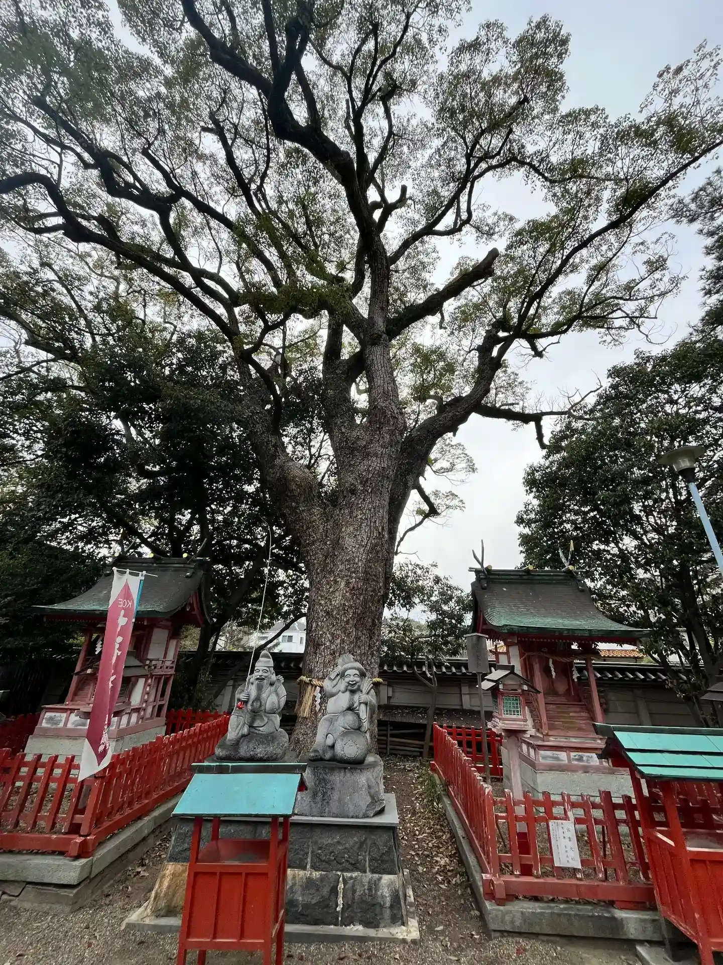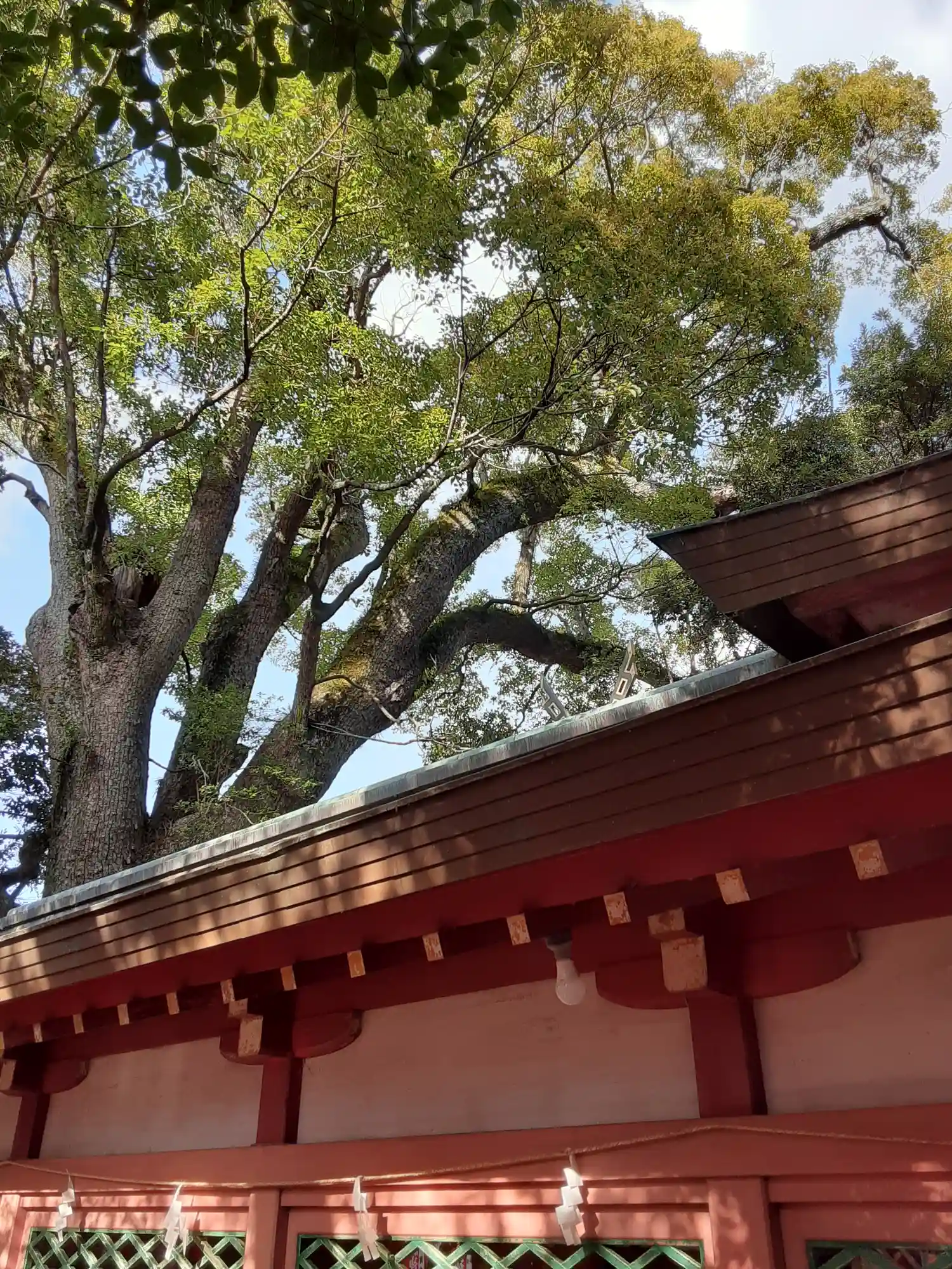 御神木の楠は、瀬戸内に生息する赤…