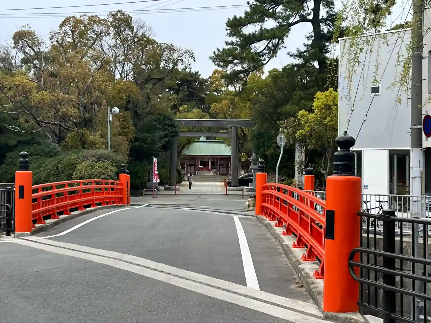 朱色に塗られた綺麗な神社です。