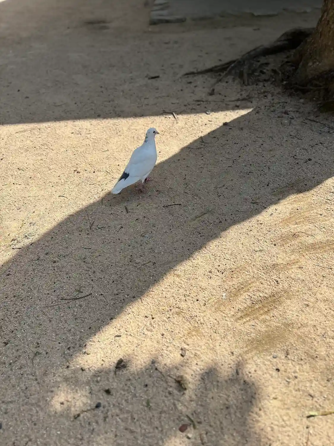 照りつける太陽の下、光り輝く社殿✨…日陰に寄り添う10数羽の鳩に…