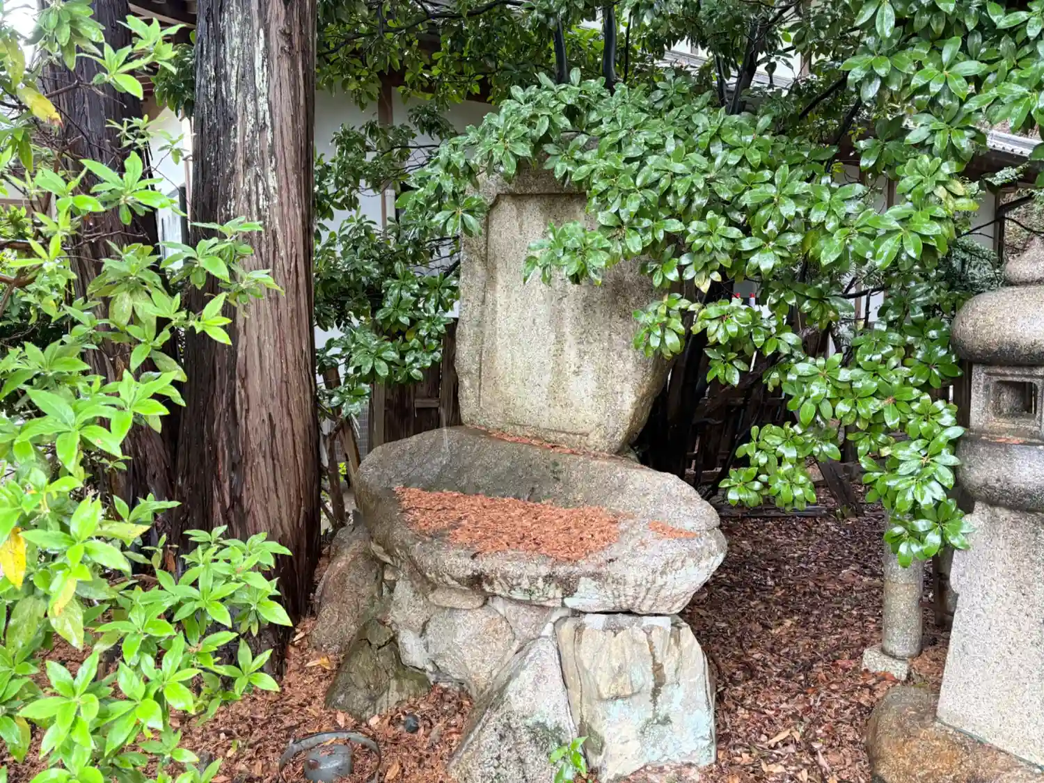 雨の降りしきる中での訪問。駐車場から、少し階段を上がった先にあります…