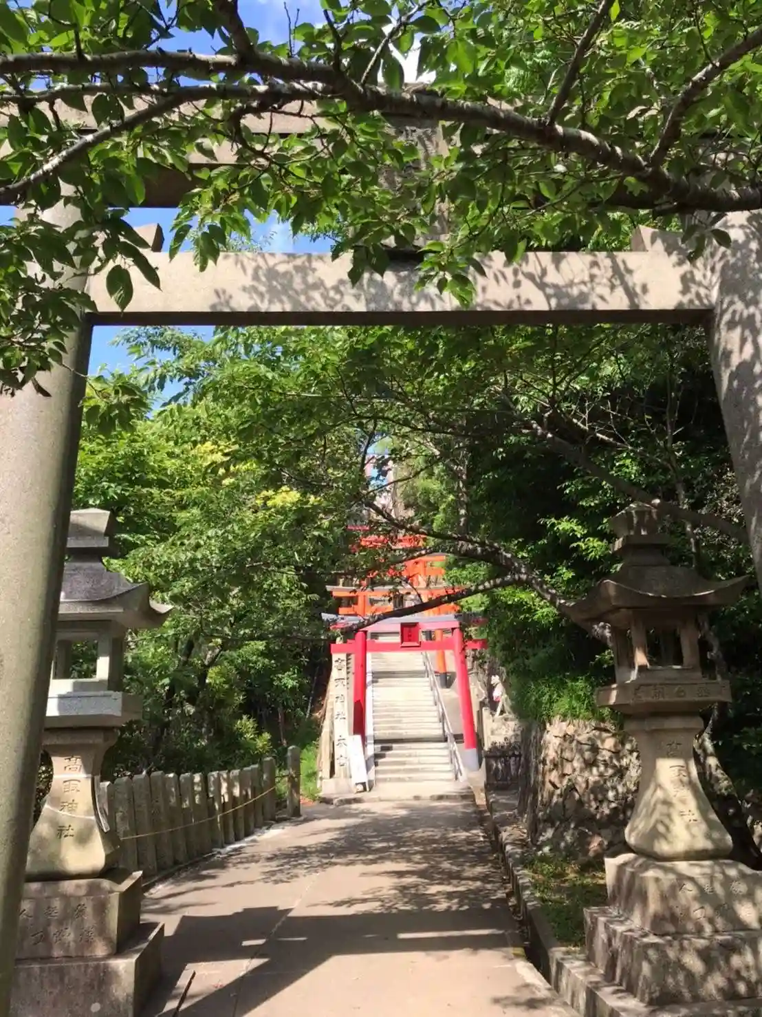 鳥居が石段にいくつも建っています