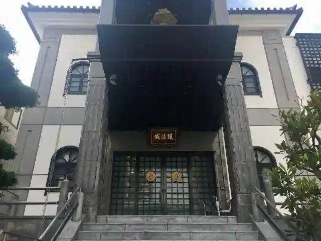 鉄筋コンクリート3階建の本堂で、門(?)は開いている。