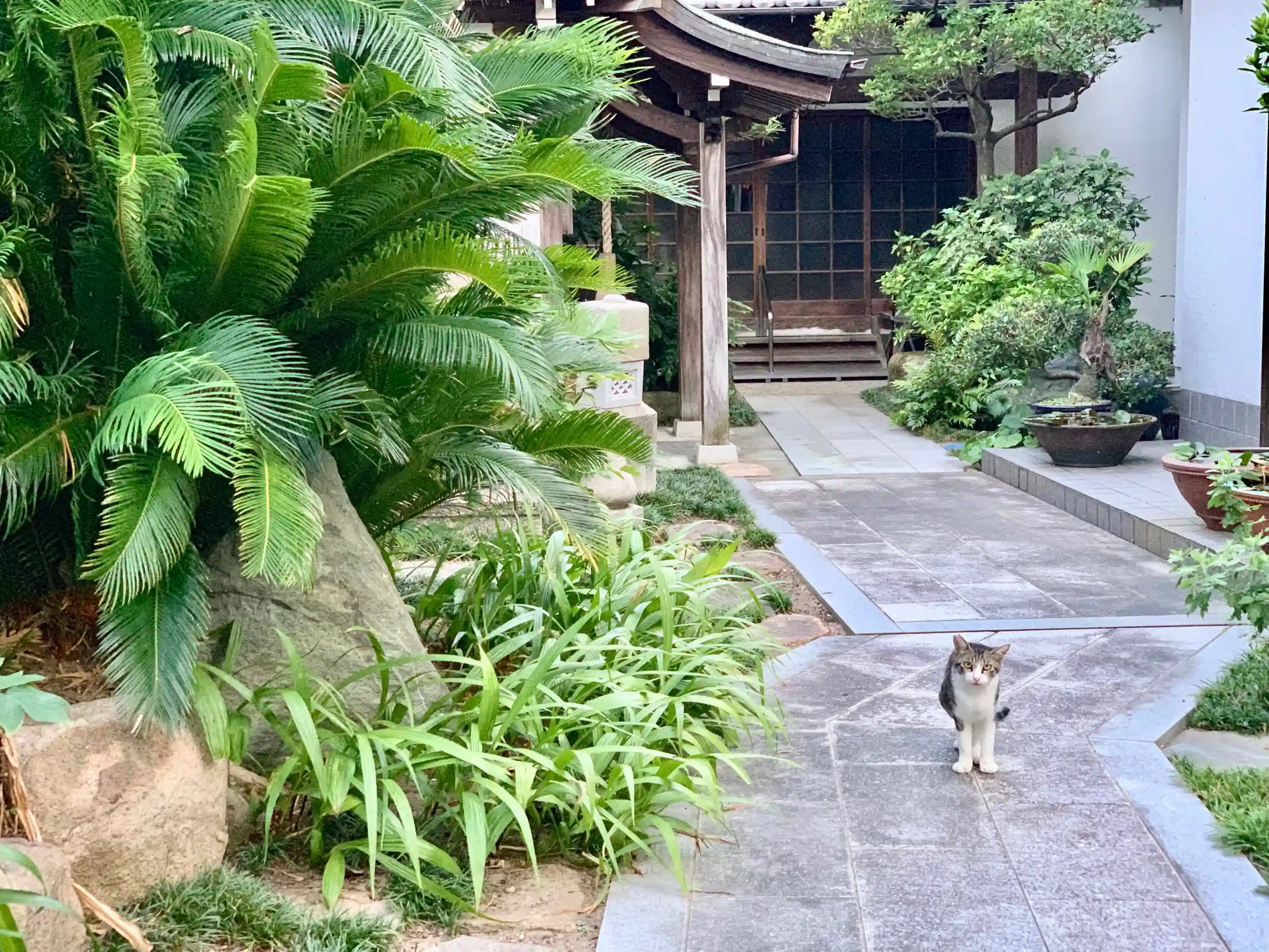 門を覗くと左手に地蔵堂?正面が本堂?右手にお家っぽい。あと、猫さん。