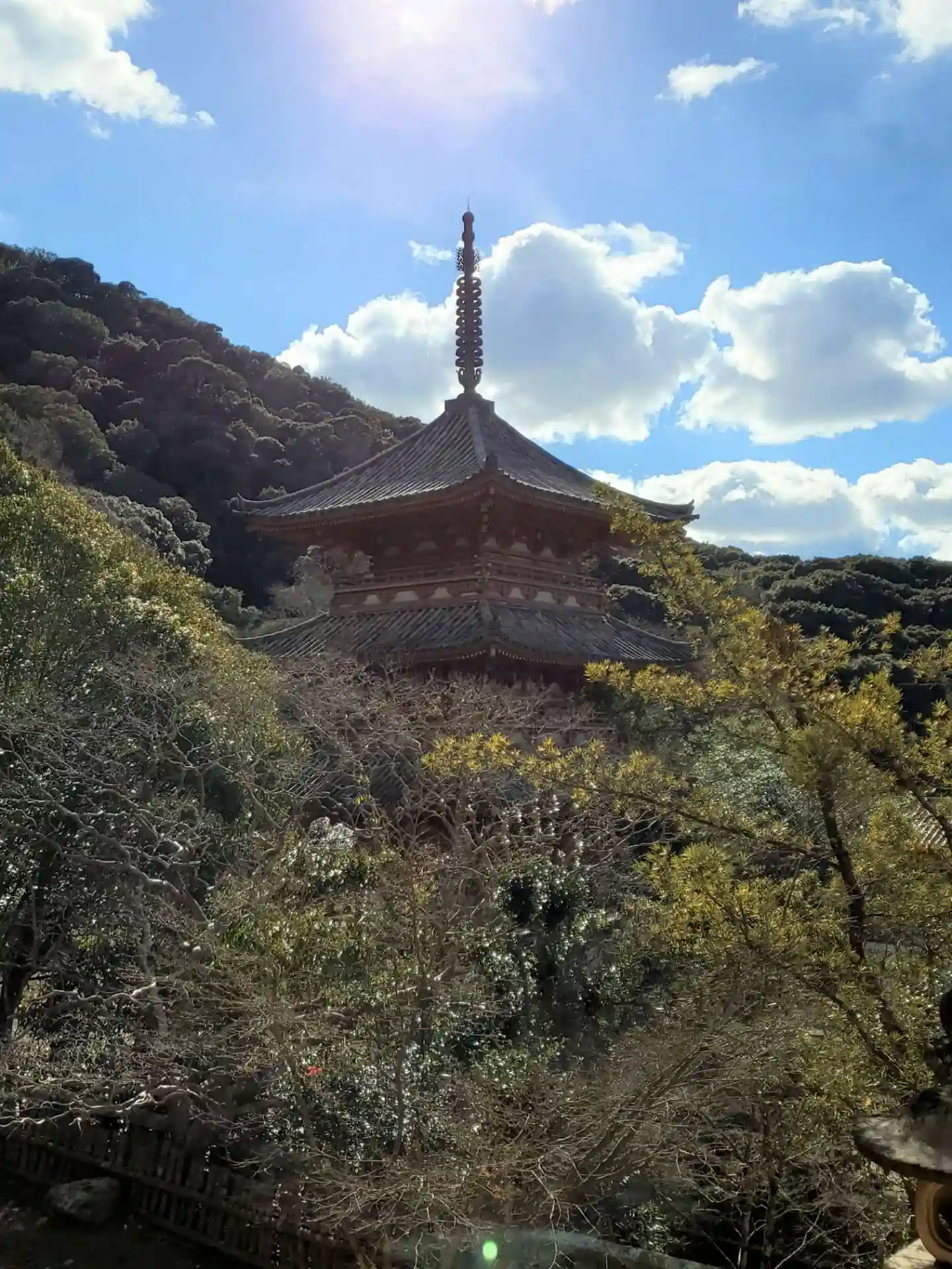 本堂から見た三重塔