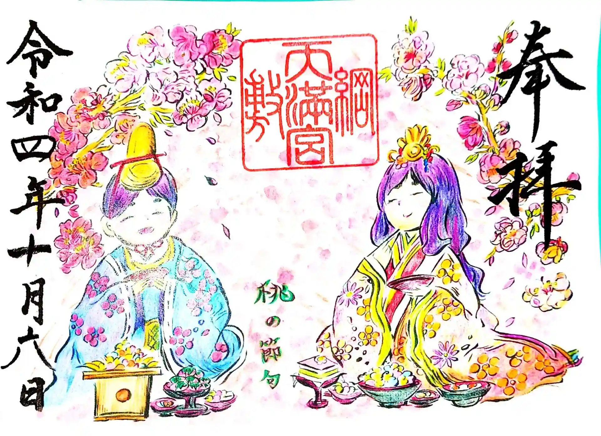 綱敷天満宮の2022年10月の季節の花御朱印「すすき」と見開き御朱印「ひなまつり」です。