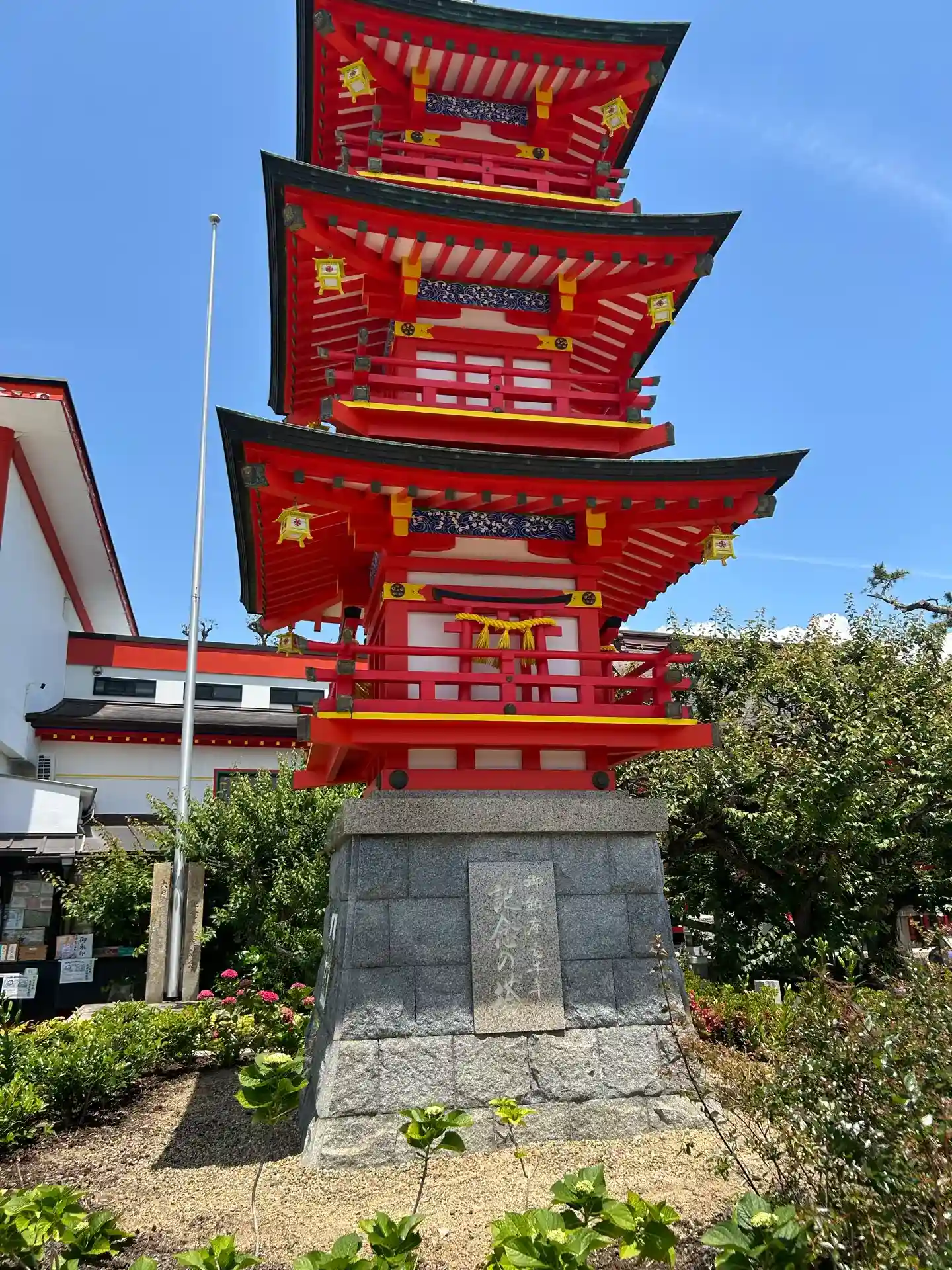 海の近所にあり、今日の好天に御神域の神殿の朱色が映えて素敵でした。
