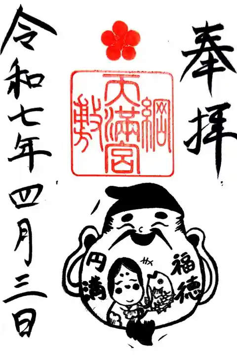 綱敷天満宮の2025年4月の和柄と四字熟語御朱印「福徳円満」です。