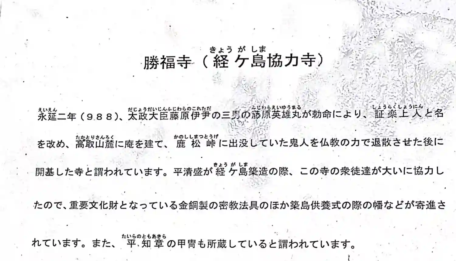 平清盛寄進の密教法具がある「勝福寺」