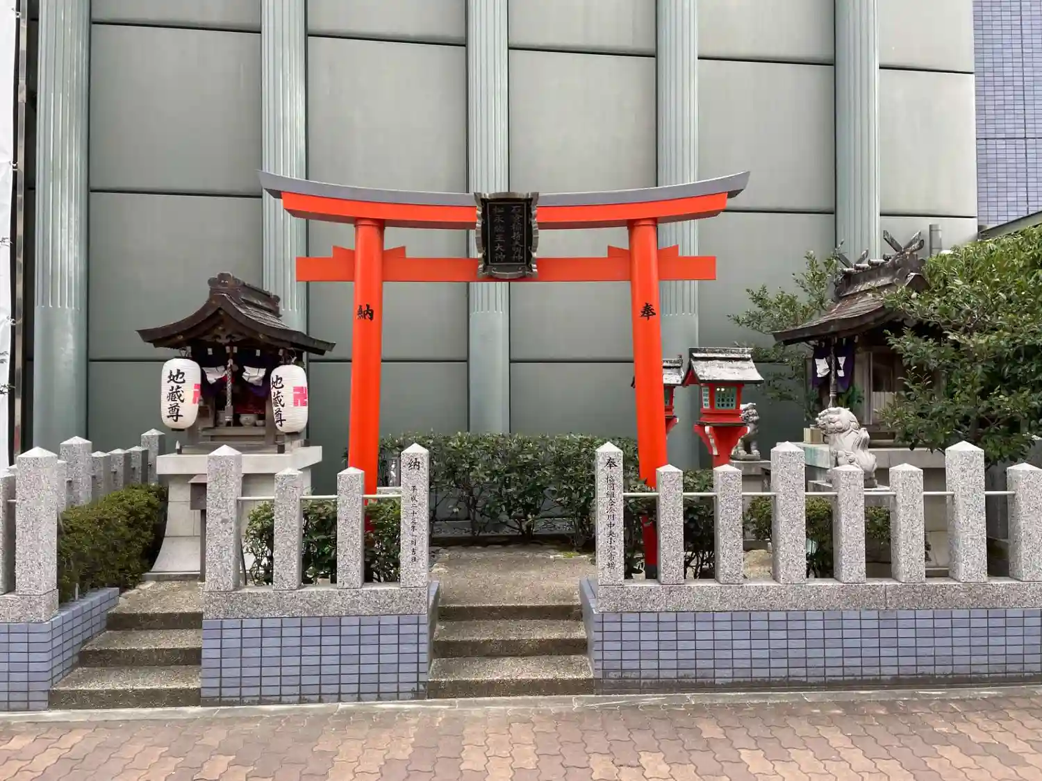 ビルの敷地内だと思うのですが 歩道の部分に境内があります。