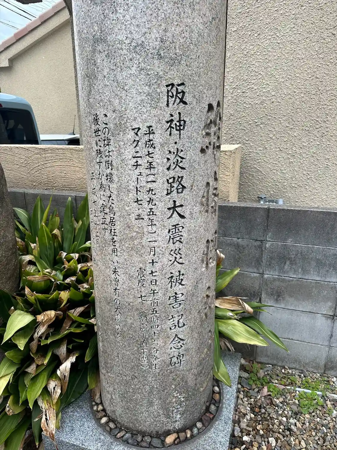 阪神淡路大震災の被害を受けた鳥居も残っています。